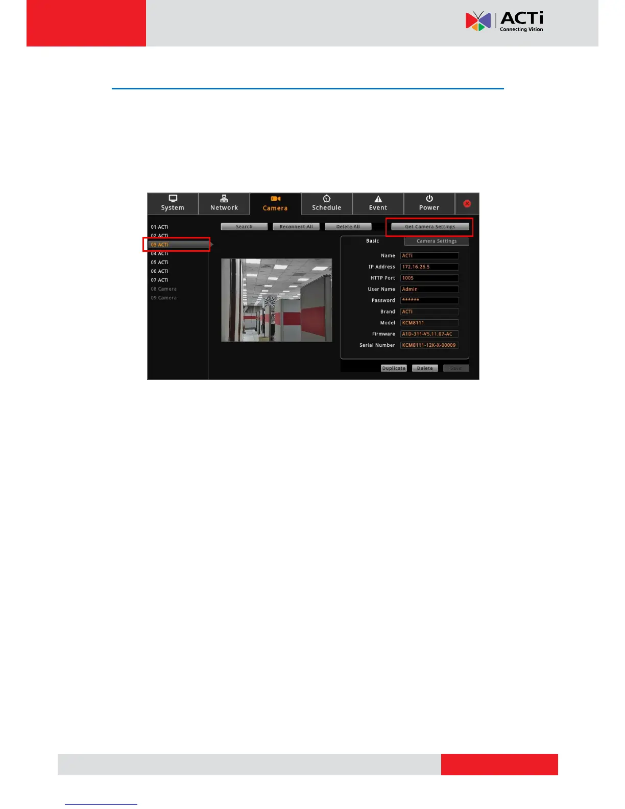 3. Click Get Camera Settings.