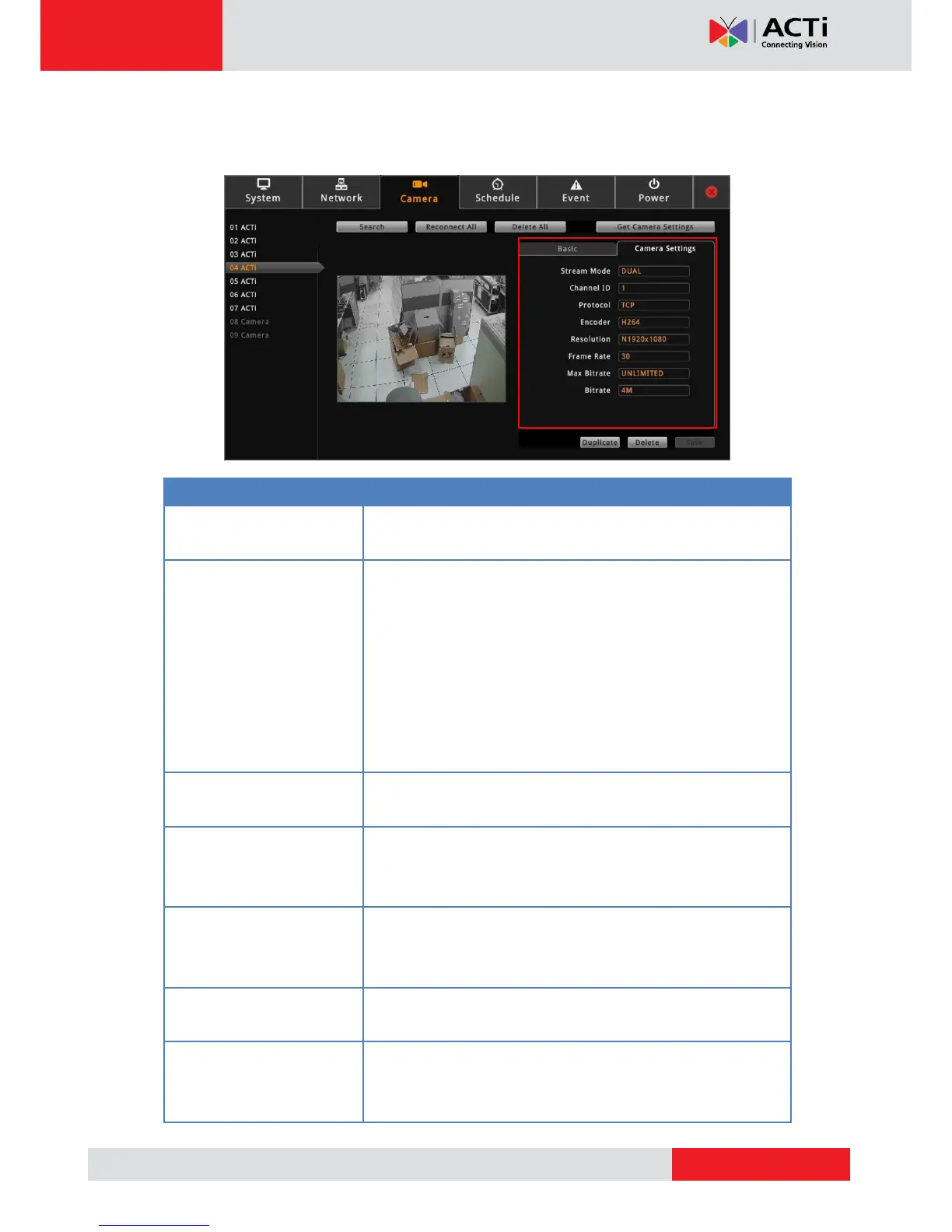 5. To modify streaming properties, click the Camera Settings tab, and modify the settings,