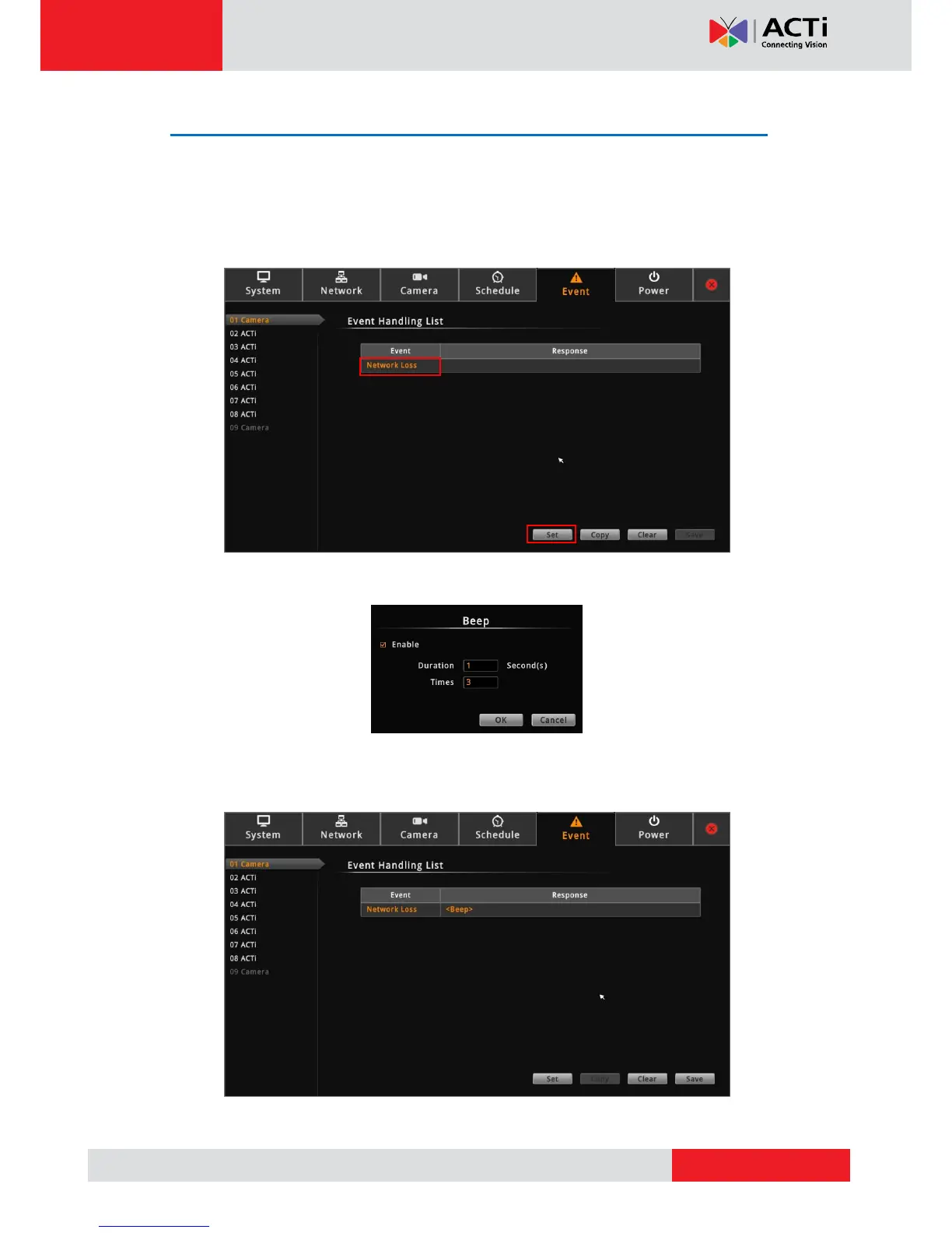 2. Click Network Loss or Video Loss, and then click Set.