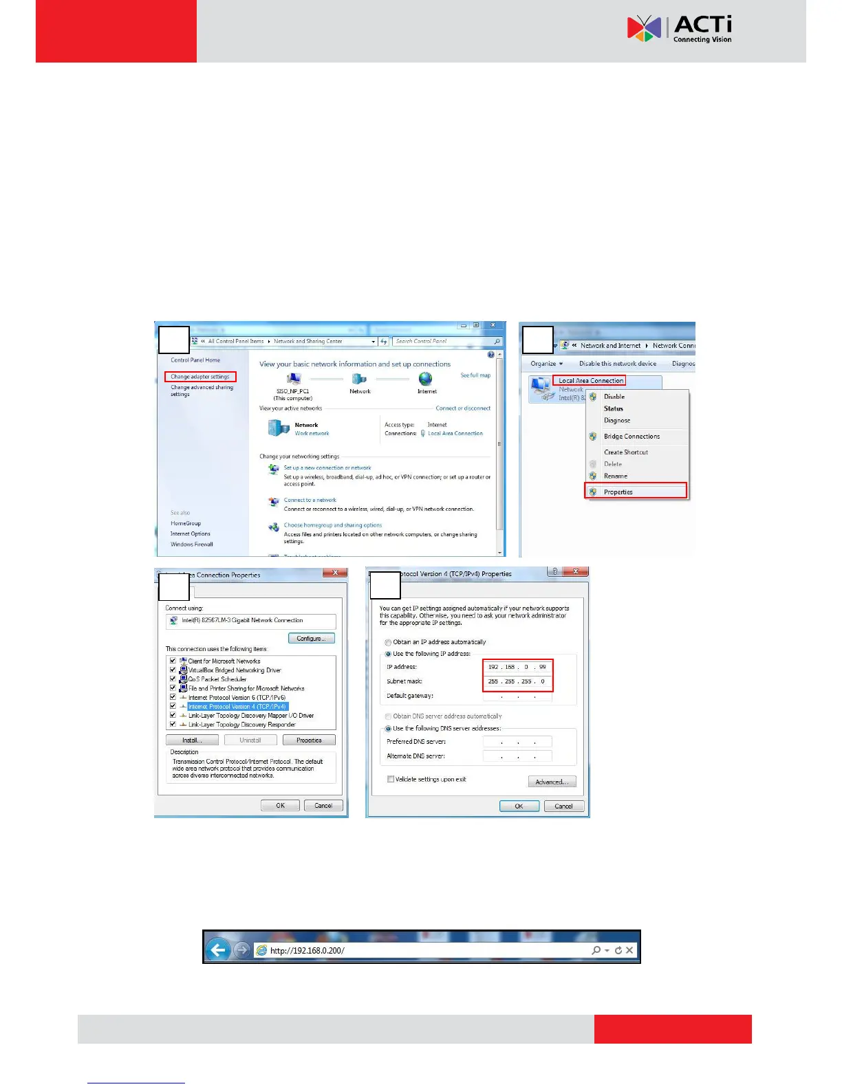 must have an IP address of 192.168.0.X (where X is any number between 1 ~ 255, except 200)