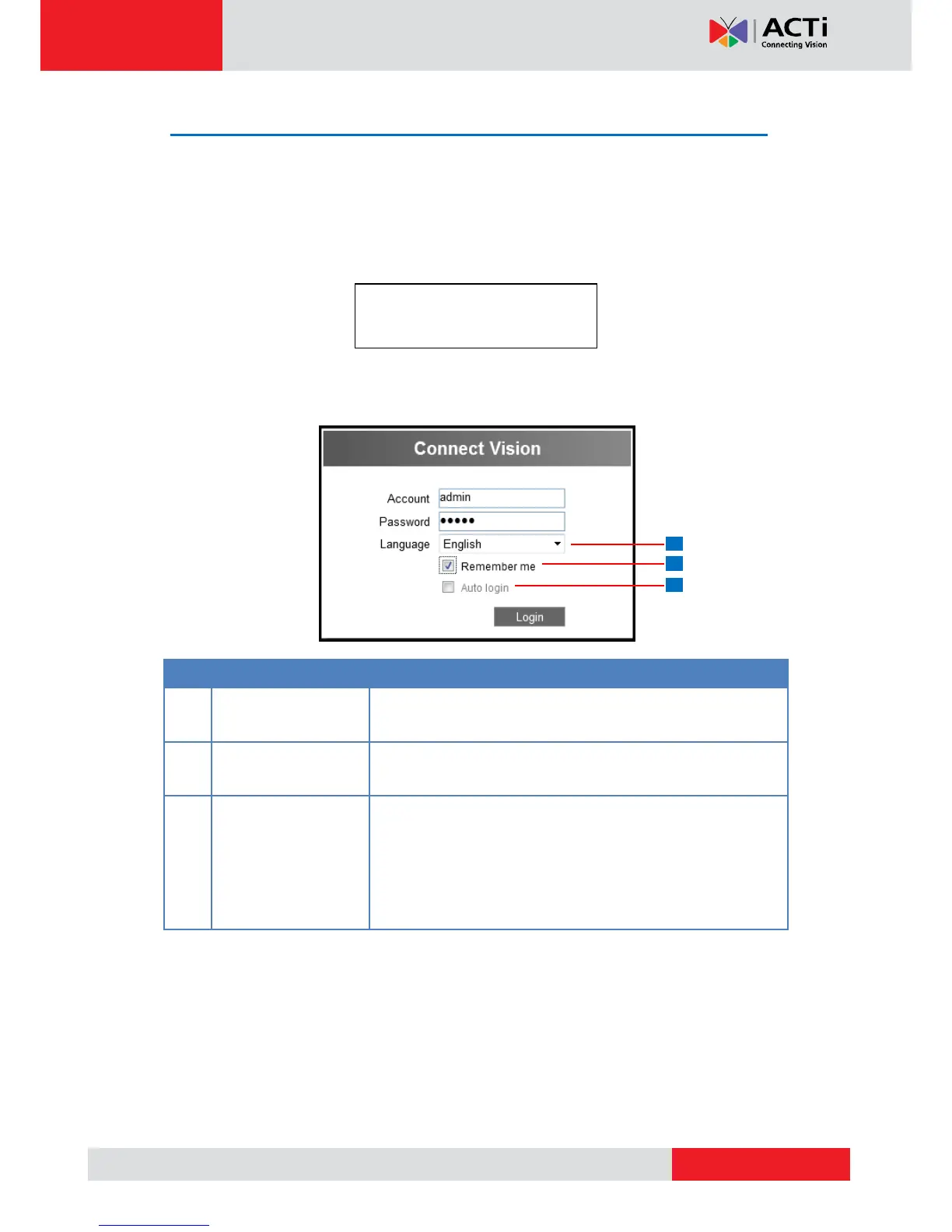 When prompted to login, enter the default Account and Password and click Login.