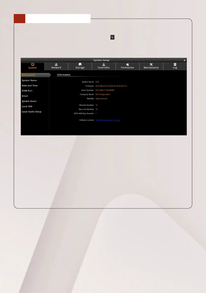 • System: Includes system information, date and time, email settings, etc.