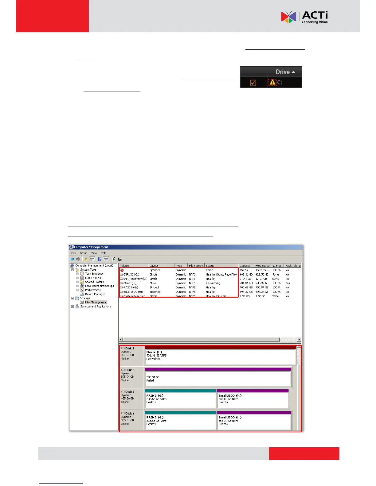 select “Disk Management”. Check the Volume list for the status of each volume, and check