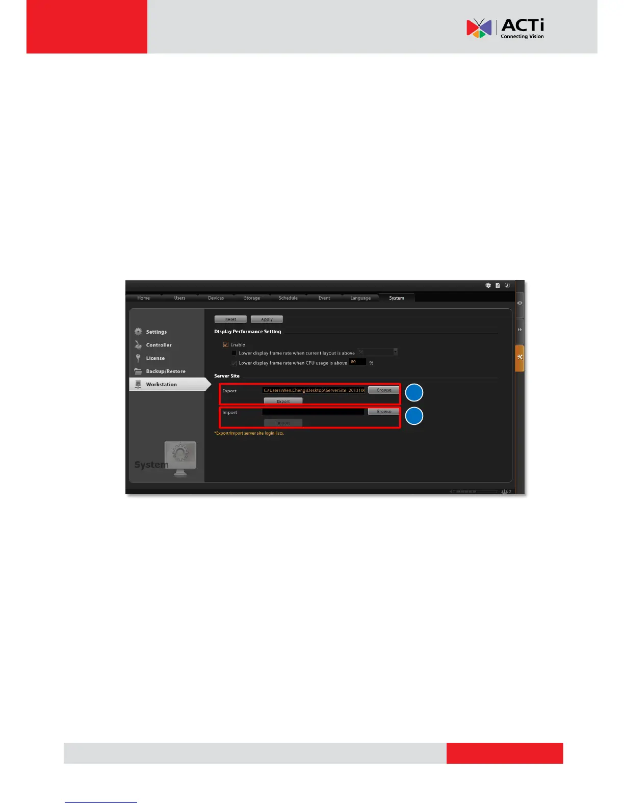 5. You can export the saved server sites, or import it to another Workstation client computer.