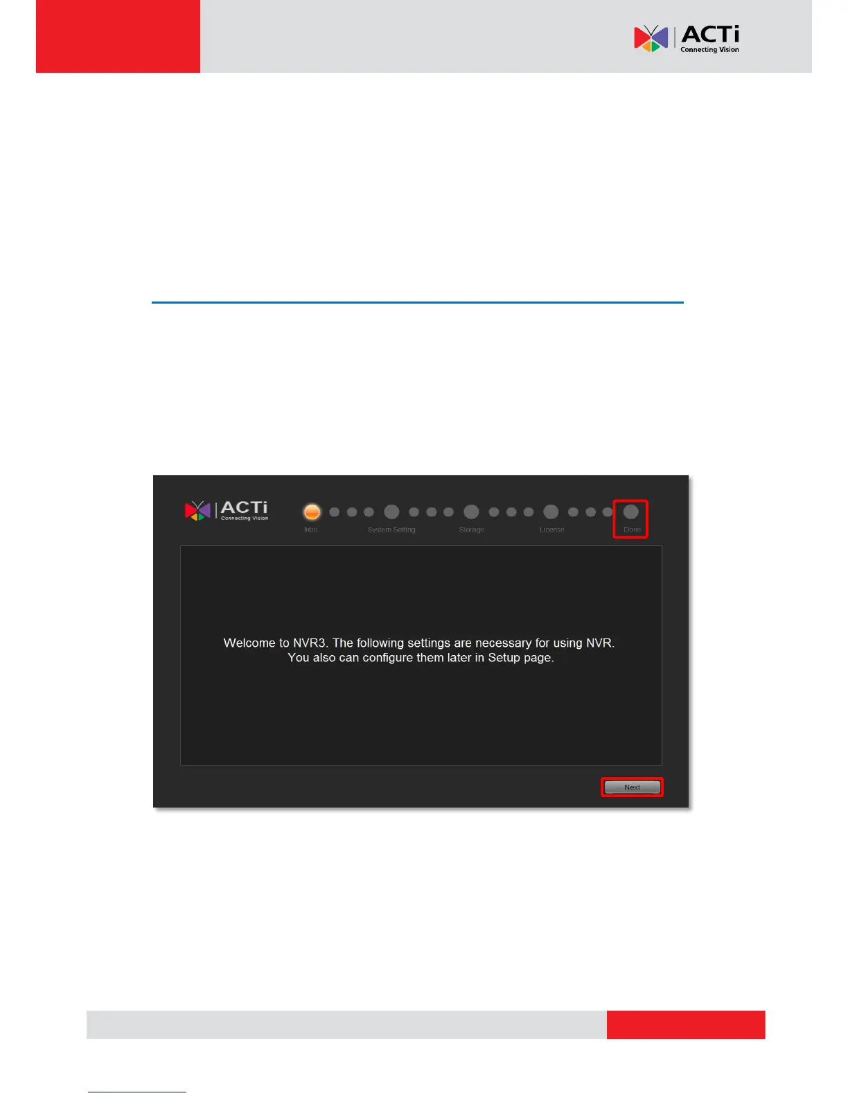 Once you connect to ACTi NVR 3.0 for the first time, Setup Wizard will guide you through the