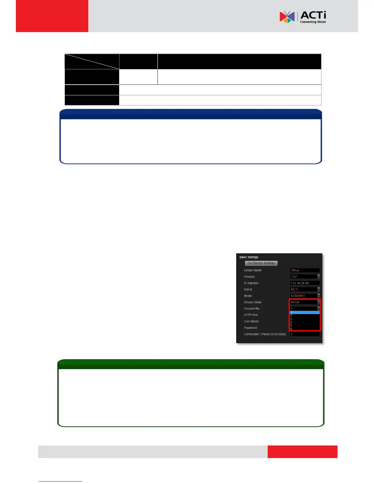 1. Select the desired stream mode in “Stream Mode” field on