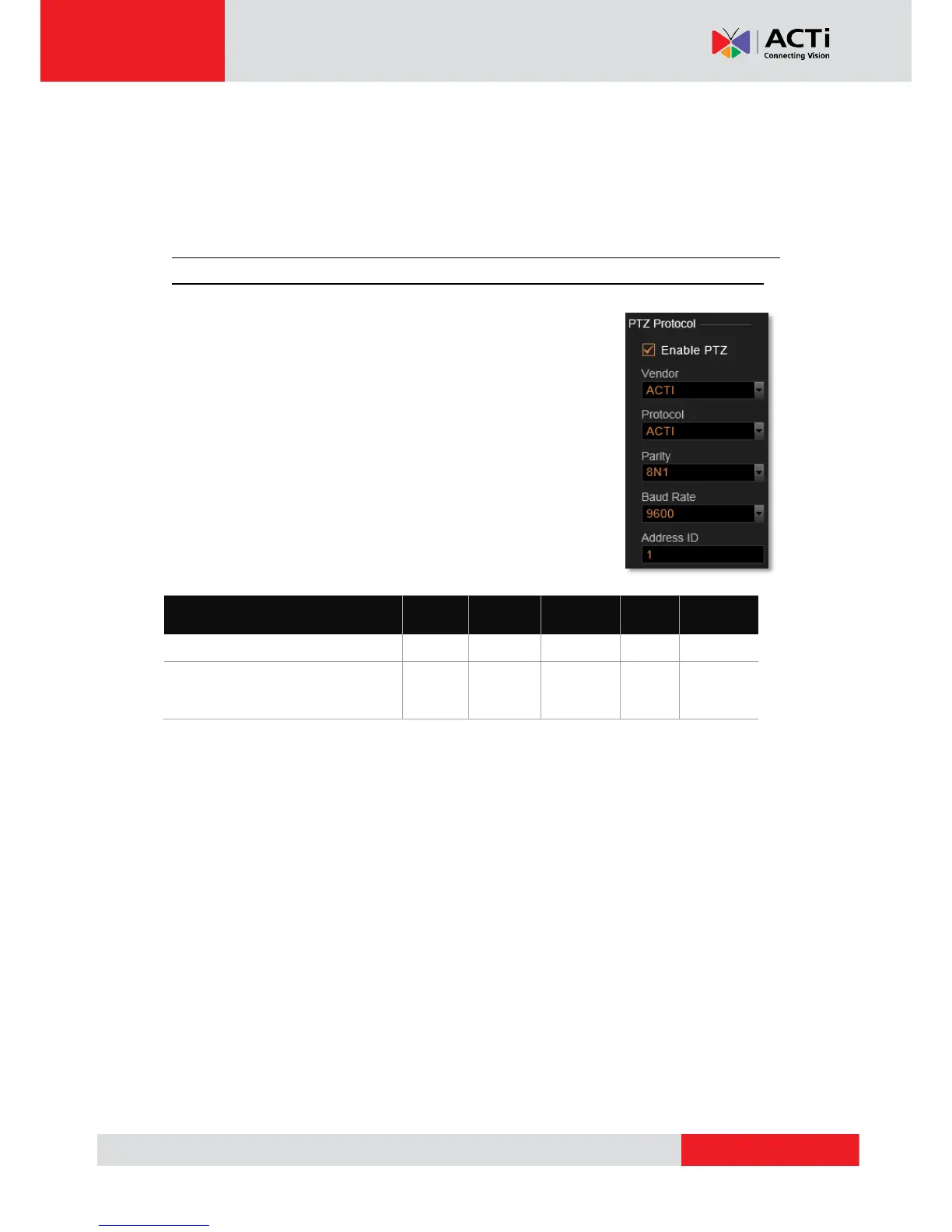 ACTi Pan/Tilt/Zoom devices, please make sure the required settings