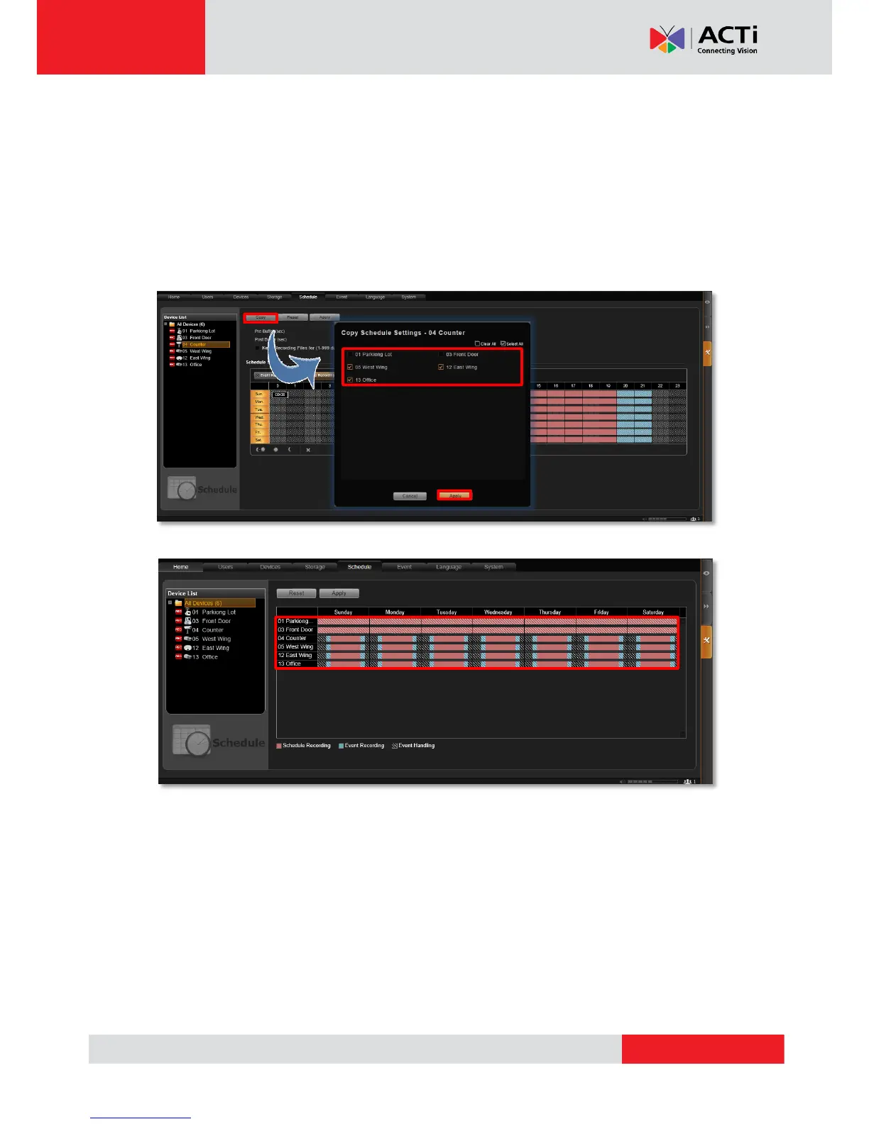 multiple devices. After creating a schedule for one device, you can copy it to other cameras.