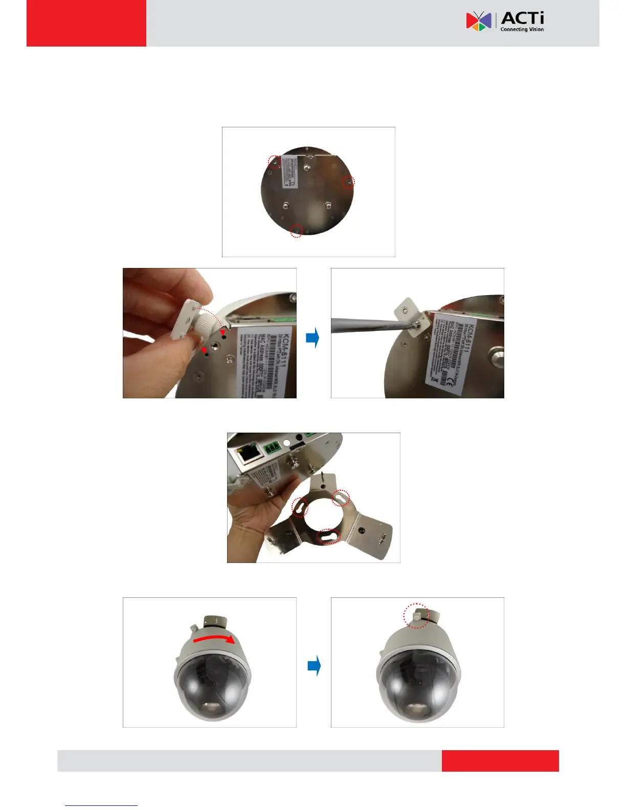 4. Align and attach the fixing bracket to one of the holes on the camera using the supplied