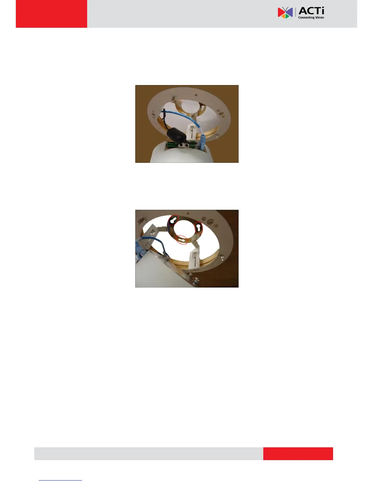 Or, if you can access the inside of the ceiling, you may mount the camera first and