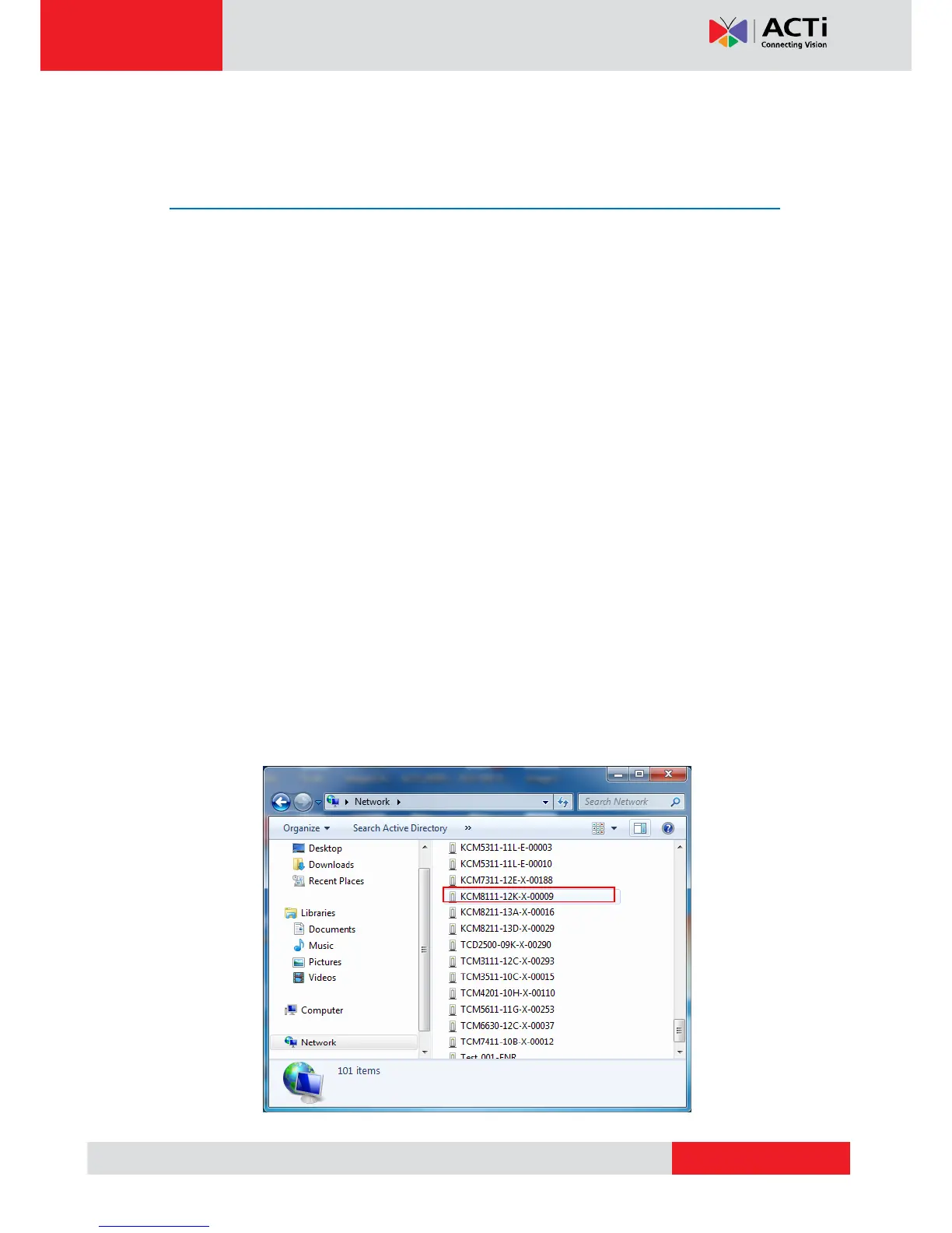 In the example below, the camera that has just been connected to the network is successfully
