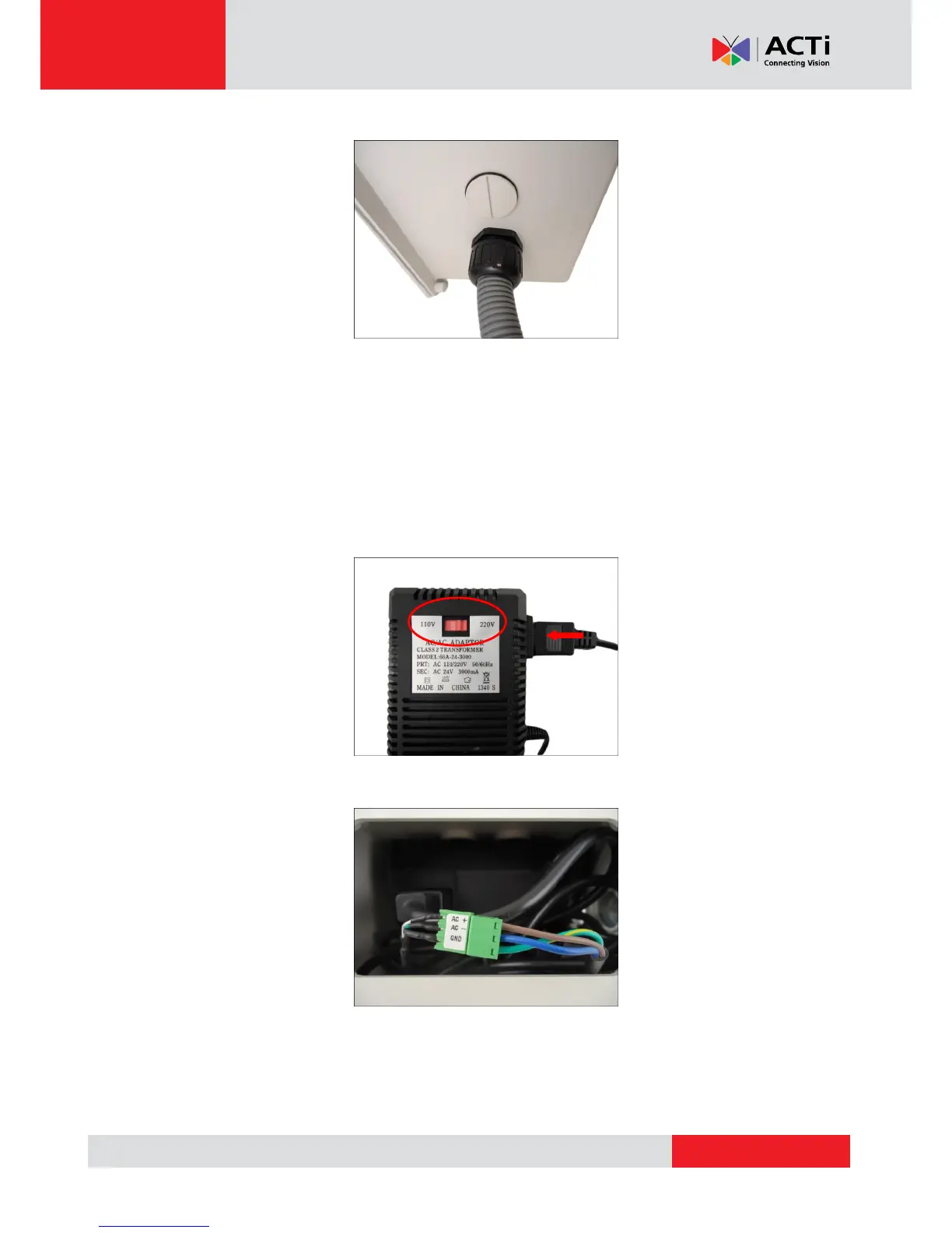 3. Connect the power connector of the camera to the cable connector of the adapter.