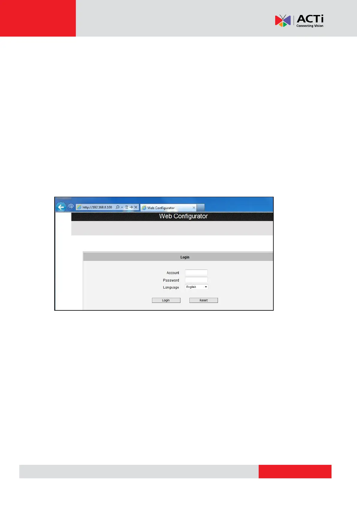Assuming that the camera’s IP address is 192.168.0.100, you can access it by opening the Web