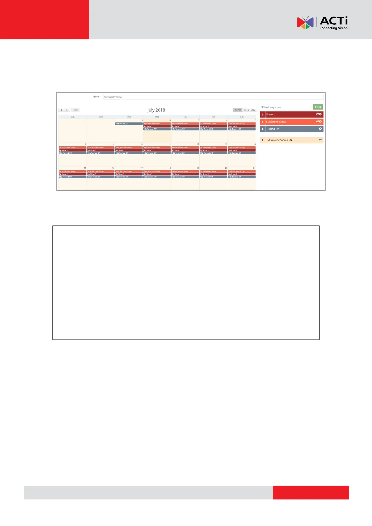 Keep in mind that the default show of the Monitor will only be used to fill in any empty