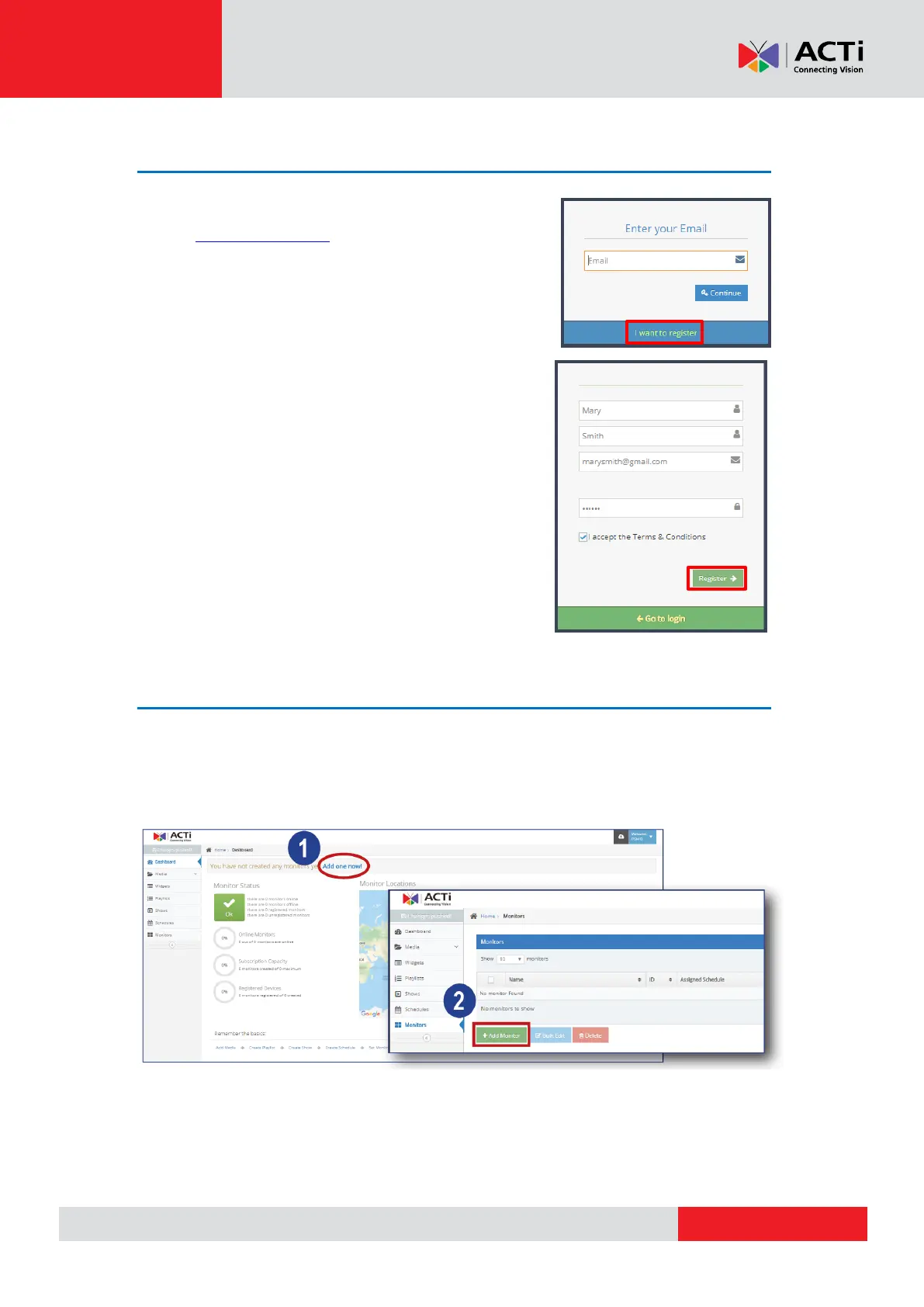 After creating an account, the ACTi Media Management Application automatically logs you in
