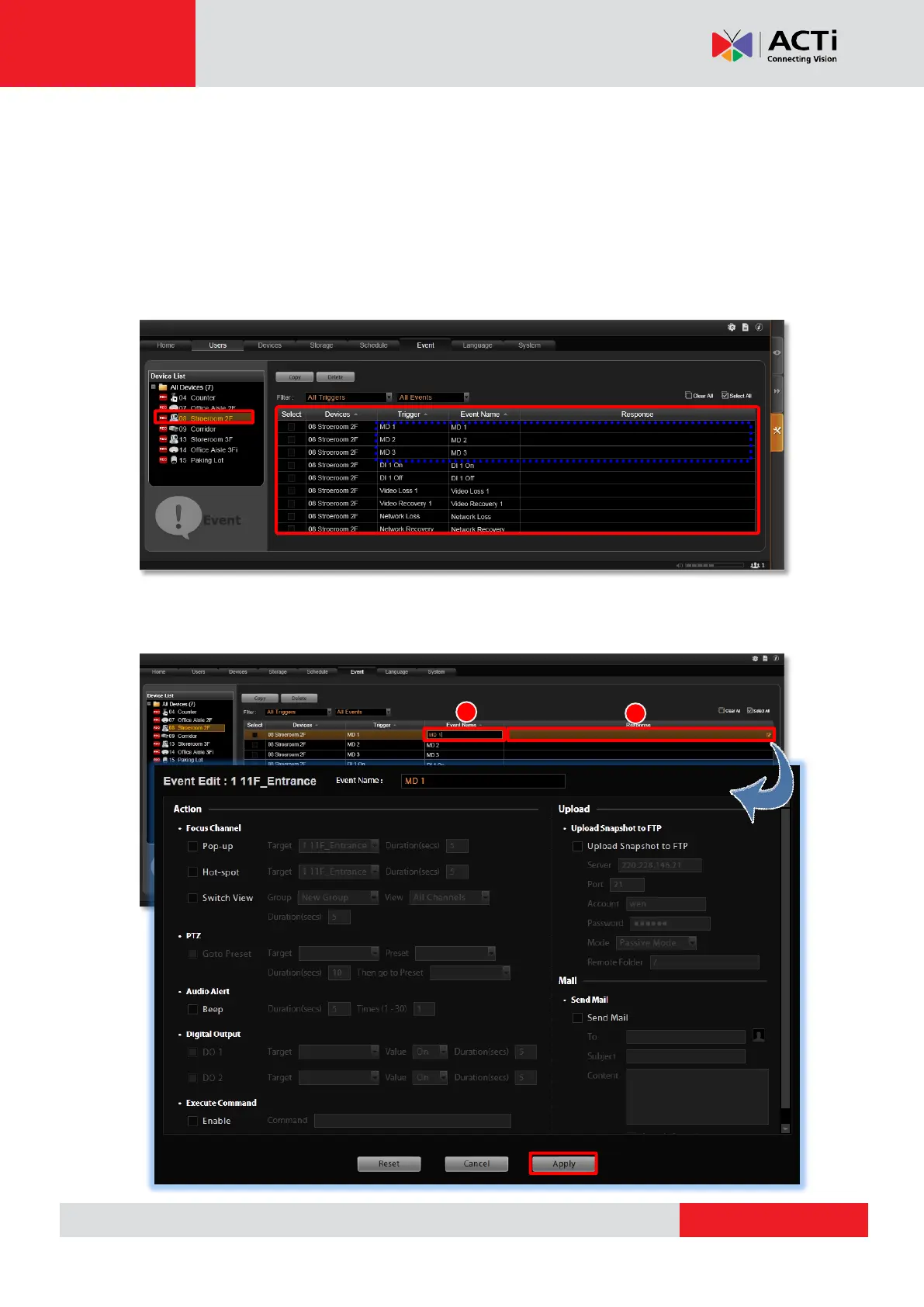1. Go to Setup page Event tab. All the editable event rules are listed in the device ID