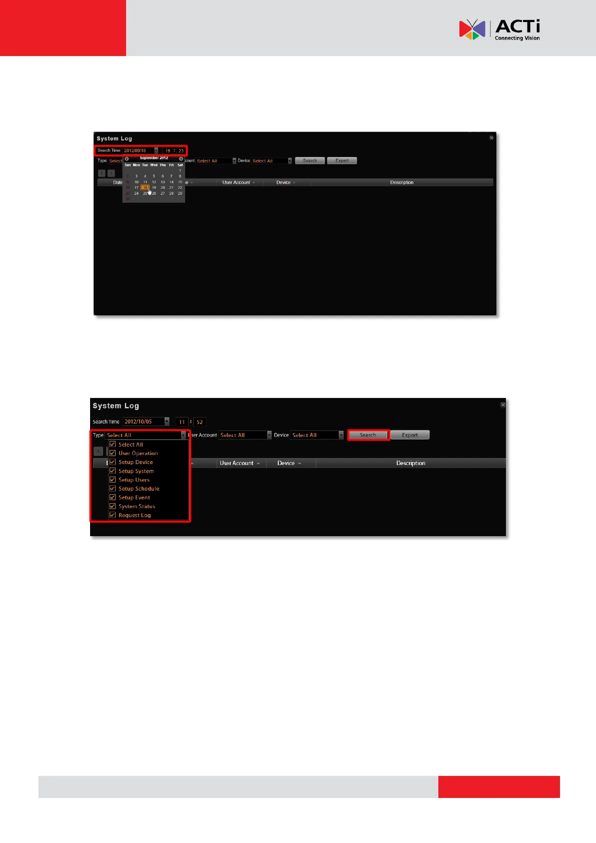 You may filter the logs by Type, User Account, and Device by selecting from the dropdown