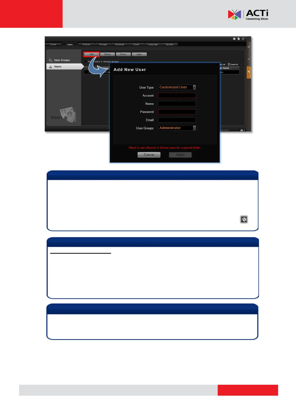 1. Account and Password fields allow alphabets, numbers, and symbols except the