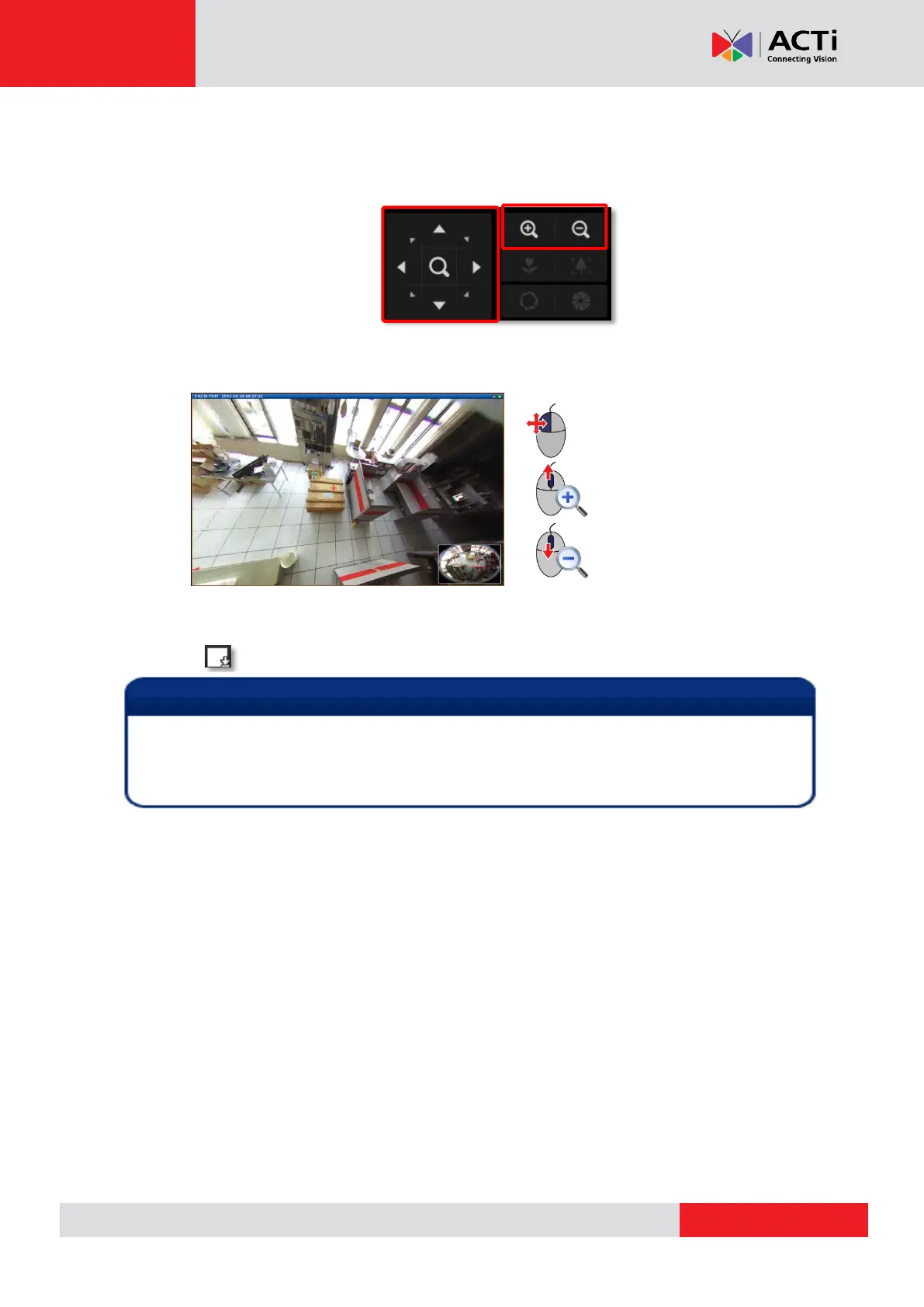 To reset the ePTZ navigation area back to default viewing angle, right-click to bring up
