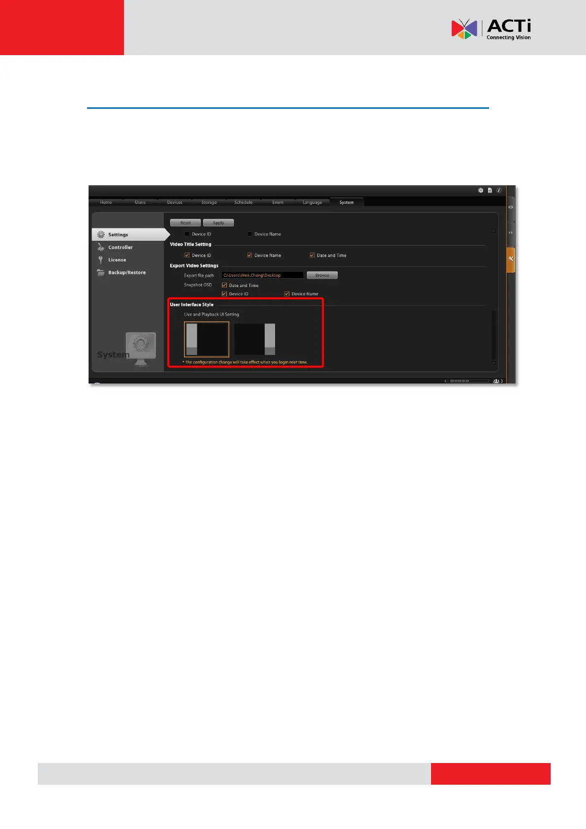 select the setting style and click “Apply”. The change will be applied upon your next login.