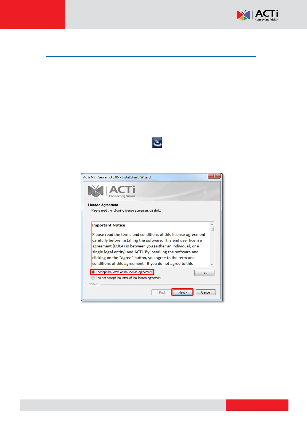 2. Follow the onscreen instructions of Install Shield Wizard, and accept the license