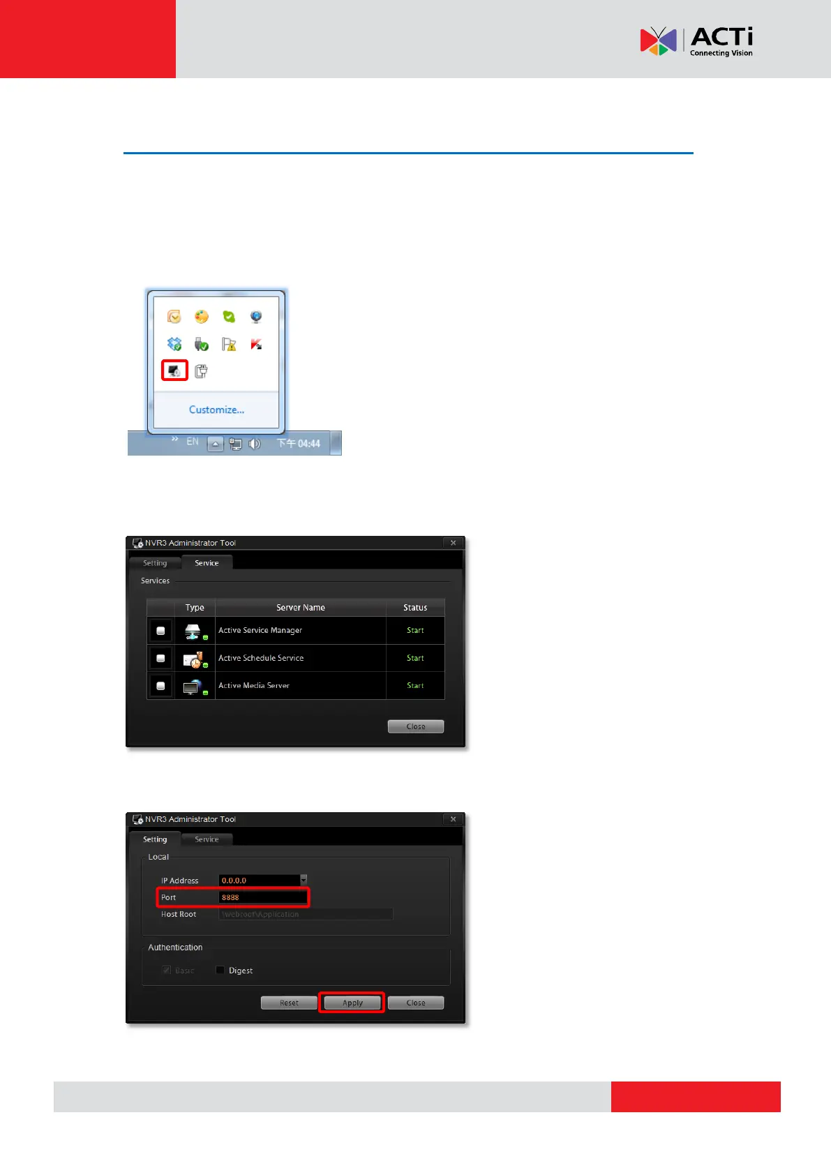You may observe the NVR services status on Service tab.