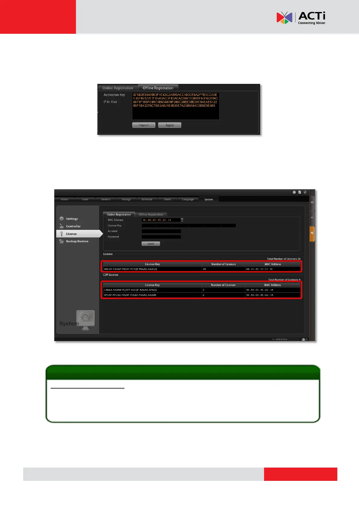 tab License “Offline Registration” click “Import” and upload the license file(.lic).