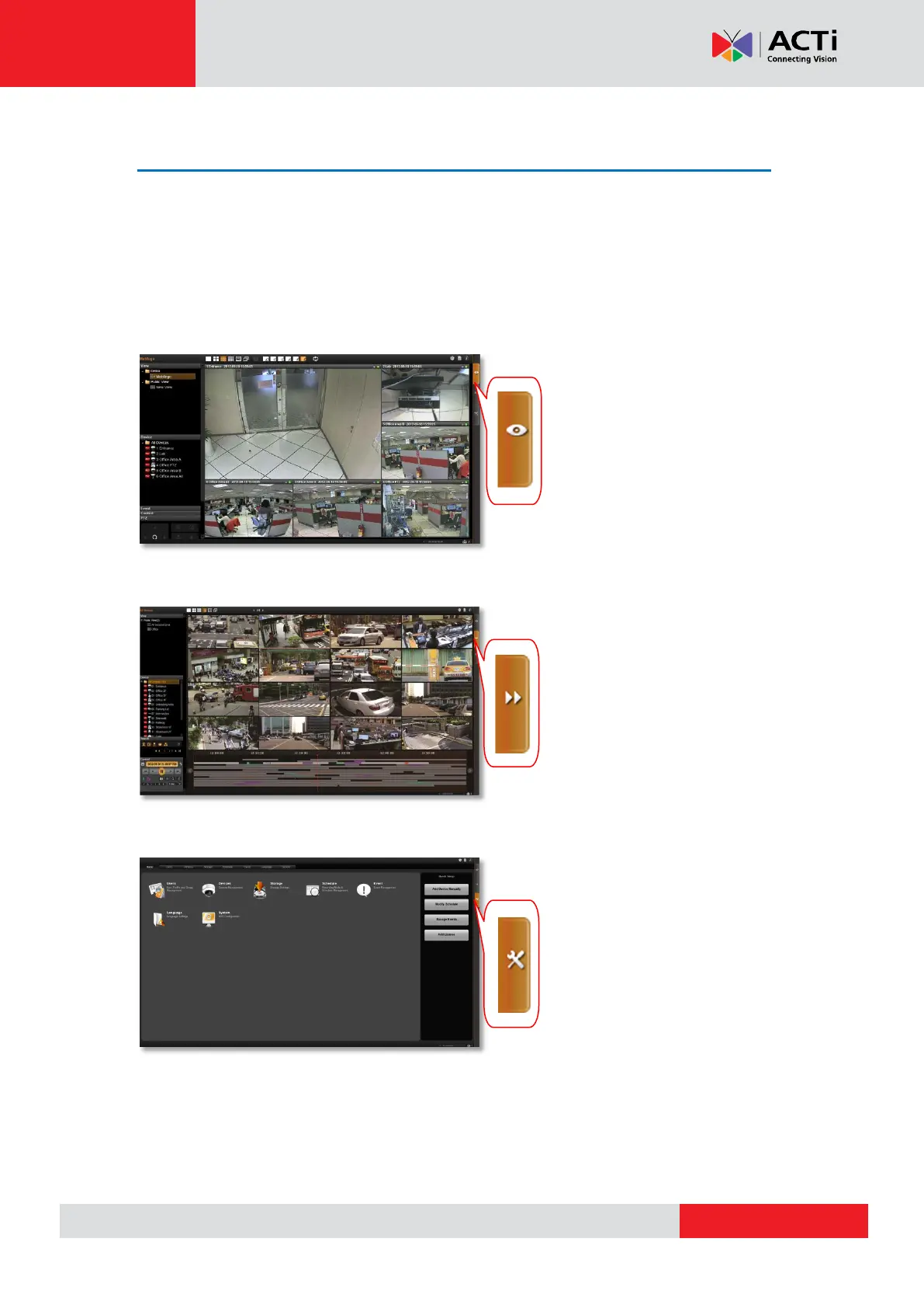 NVR major functions: (1) Live view, (2) Playback and (3) Setup. You can click the orange