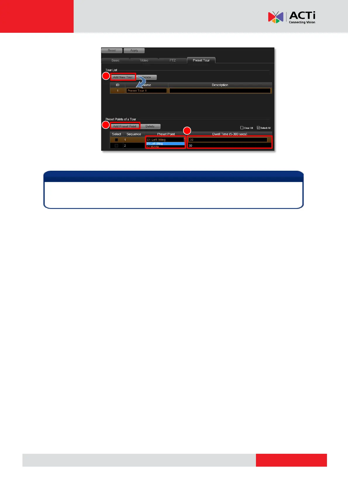 4. After a tour is saved, it is available on Live View pagePTZ control panel.