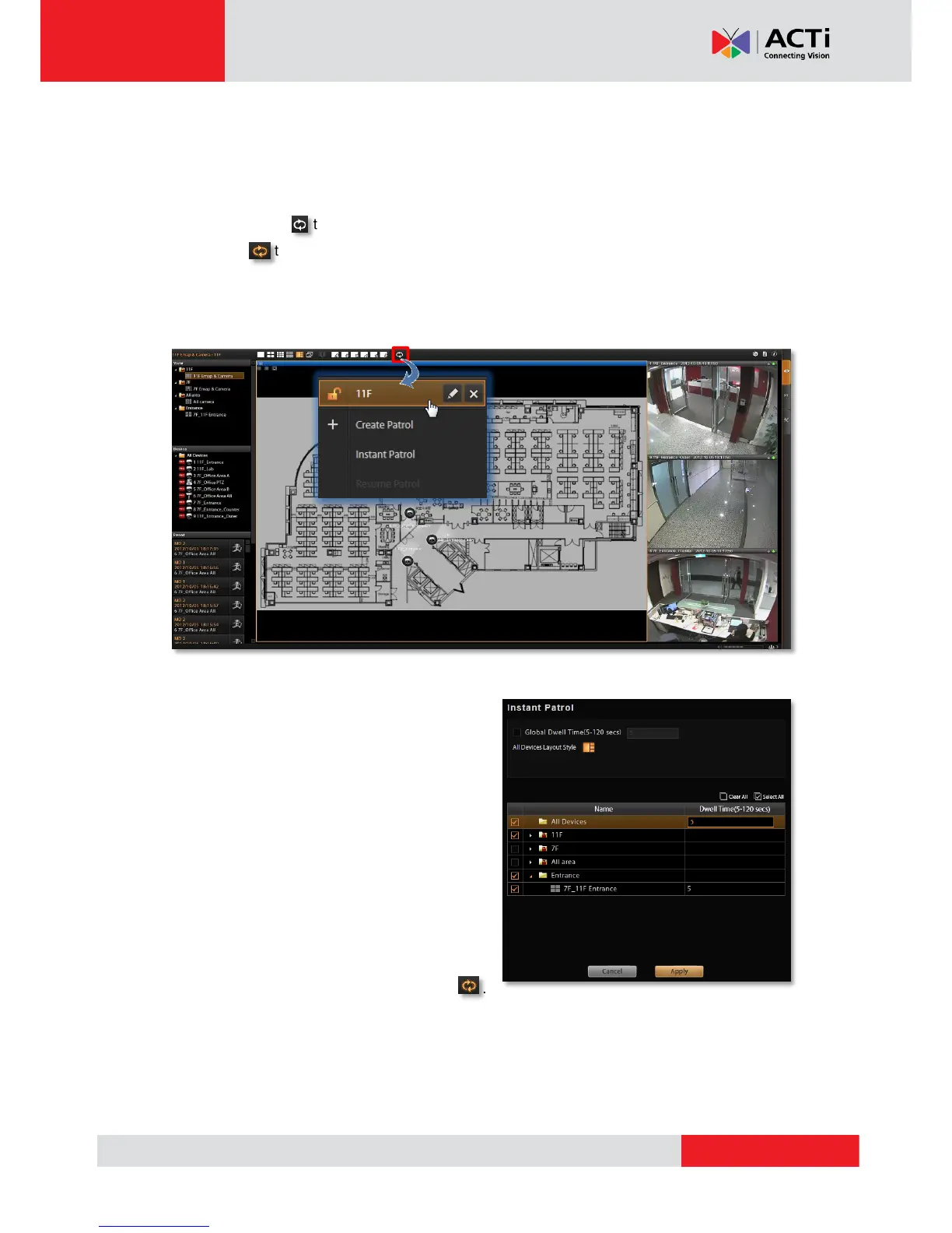 On title bar, click to select a saved patrol. As patrolling is running on Live View is doing