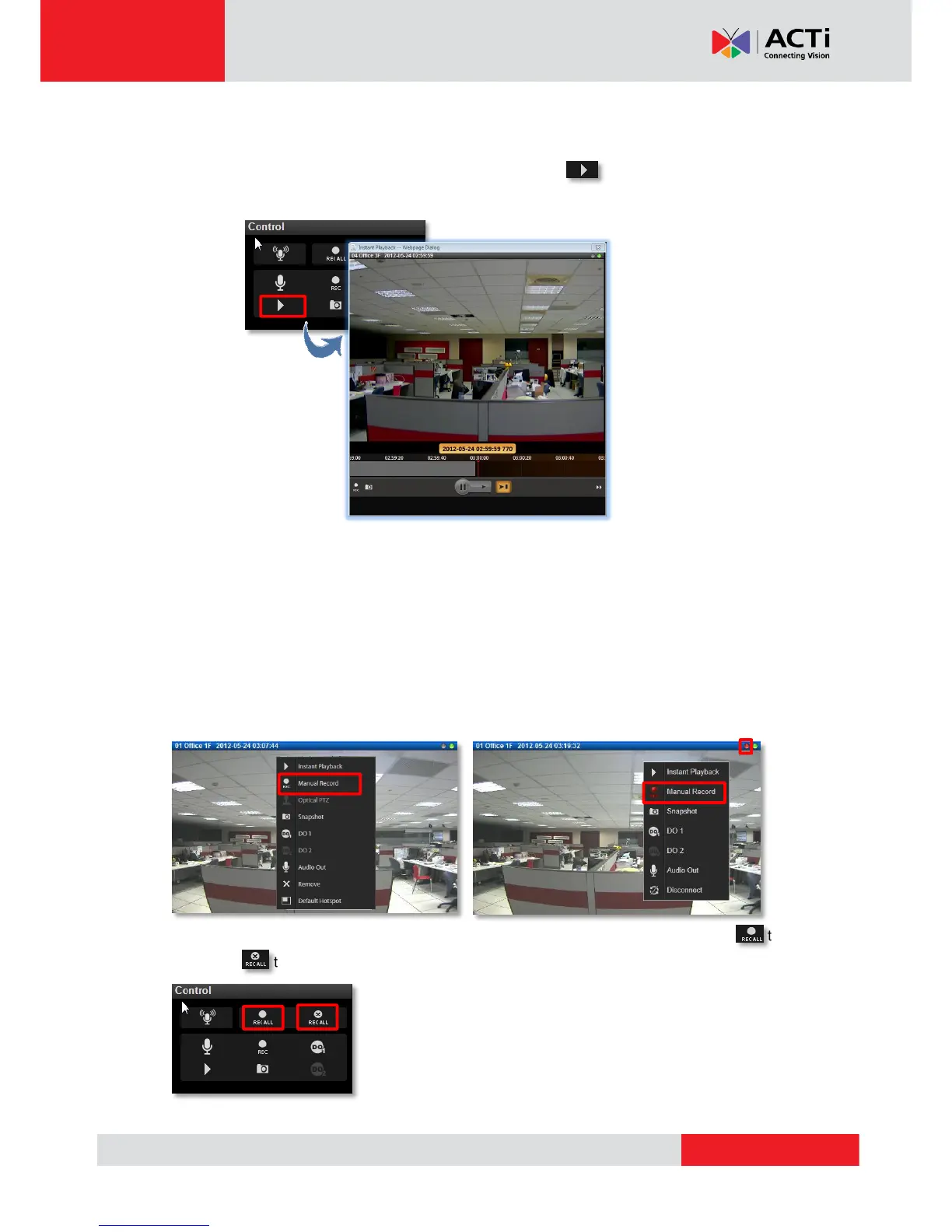 switching to Playback screen. As a channel is focused, click on Live View Control