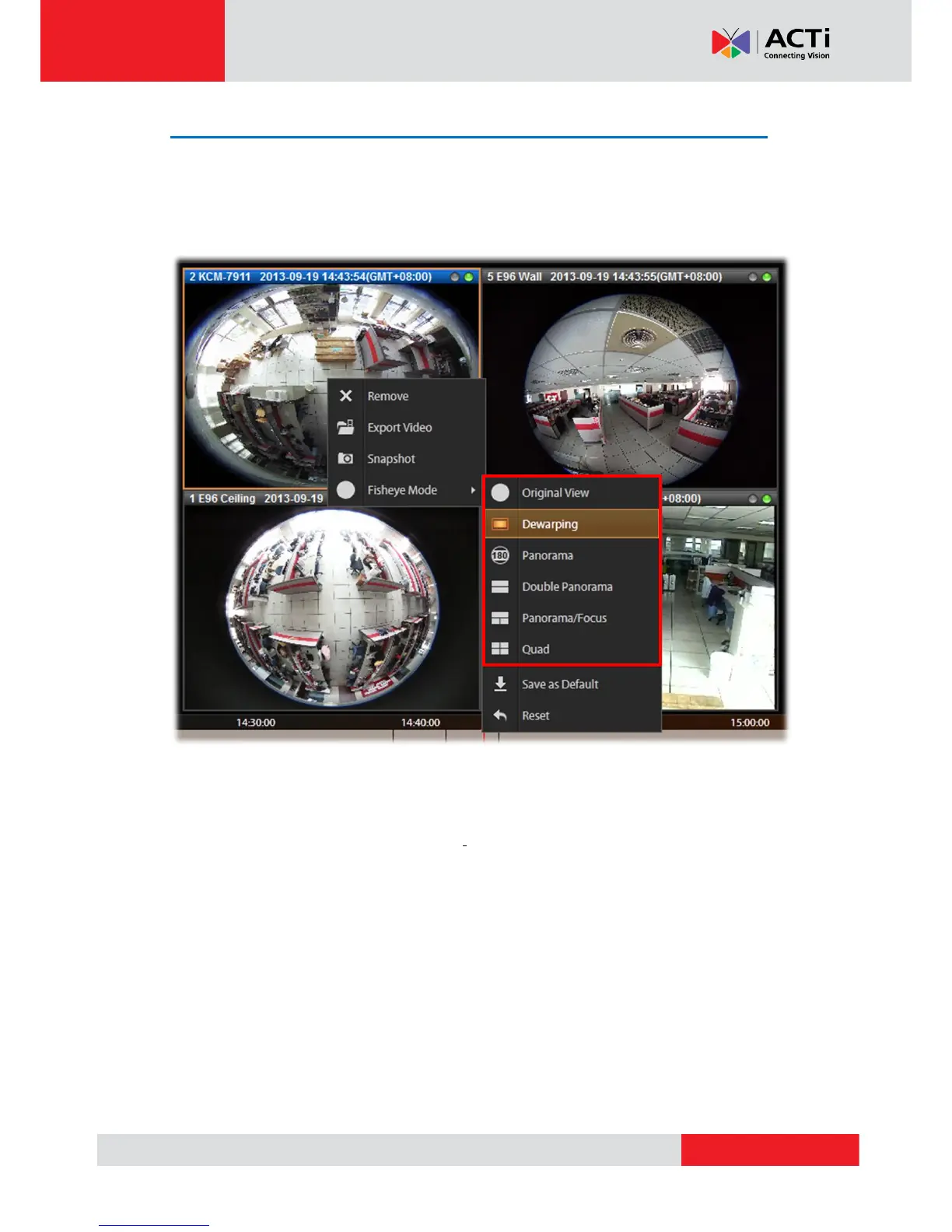 camera channel, right-click to bring up the channel menu Fisheye Mode select one view