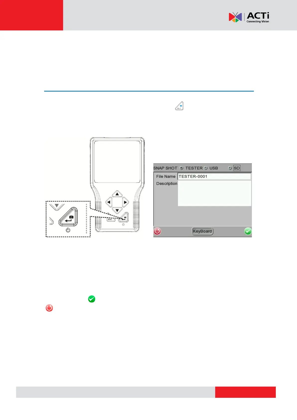 In the IP Camera’s live view mode, press the <Snapshot> key on the Device’s button pad.