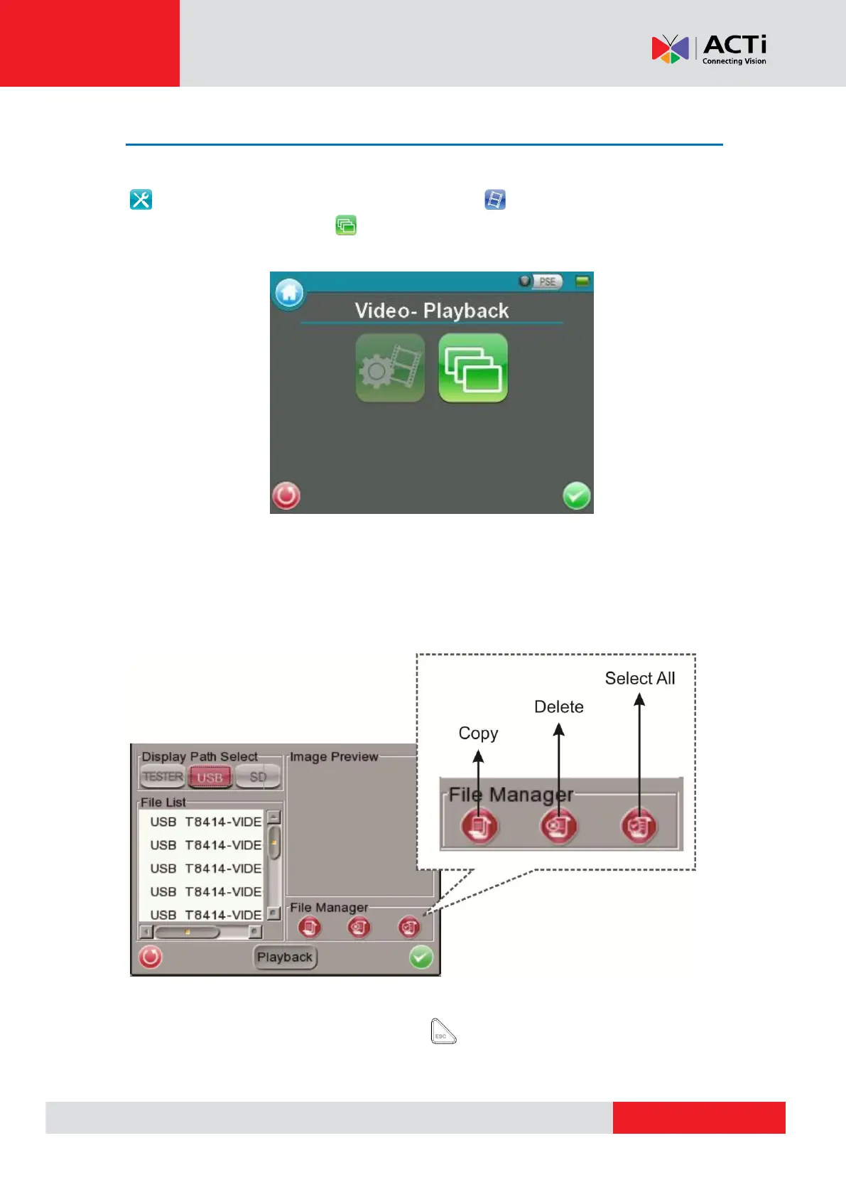 In the Video Playback mode, press the <ESC> key on the Device’s button pad to stop