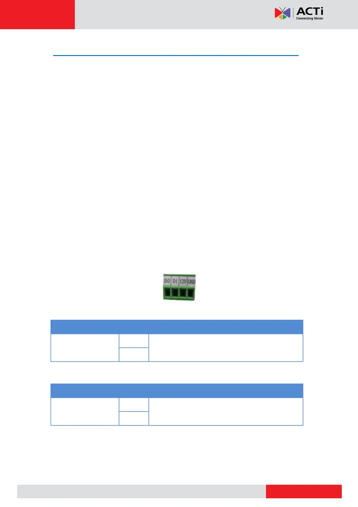 Depending on your surveillance needs, you may connect one (1) digital input and one (1)