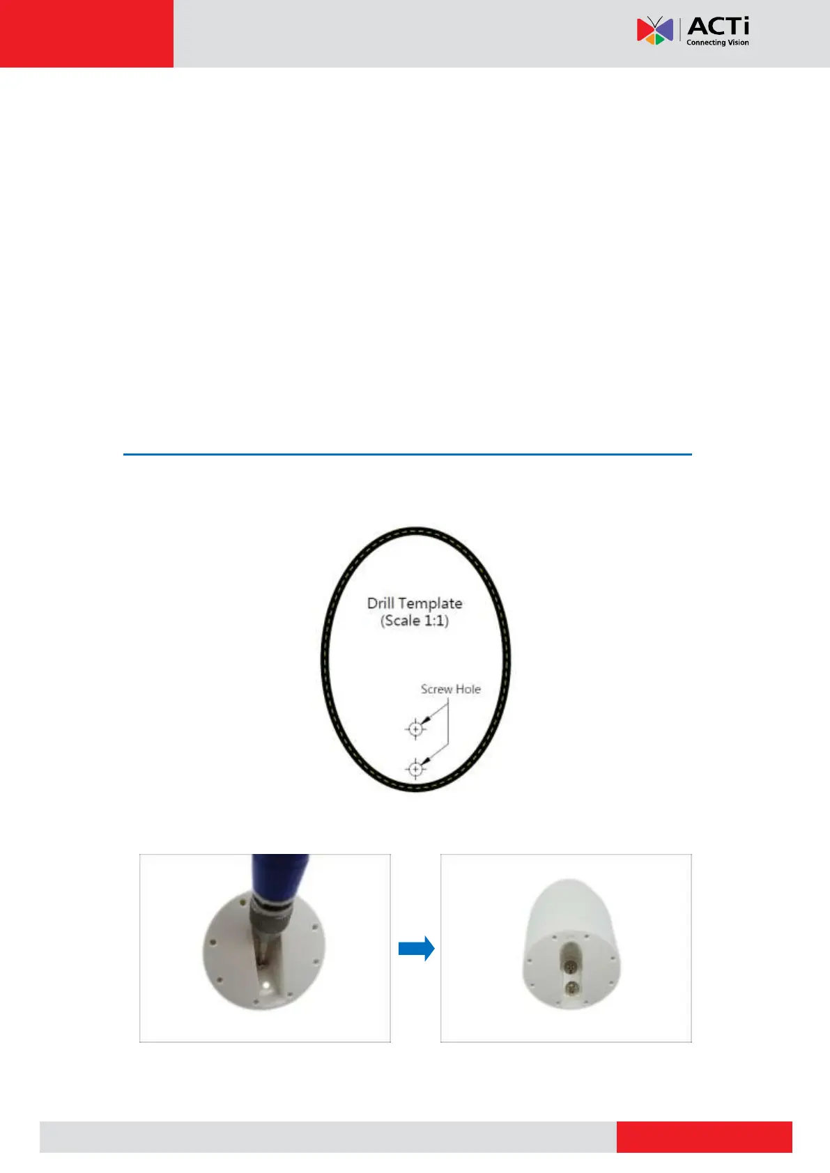 1. Attach the bundled Tilted Mount drill template sticker on the target installation surface. Drill