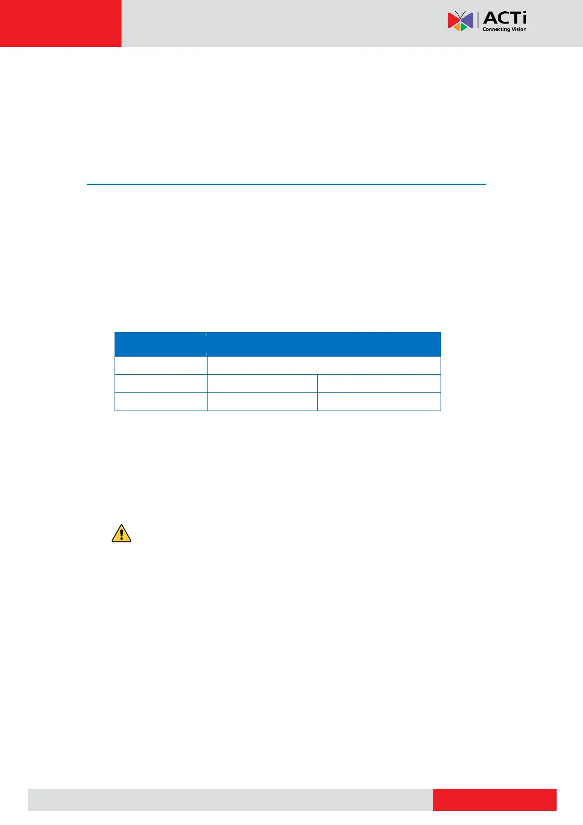 DISCLAIMER: ACTi will not be responsible for any damage caused by improper wiring.