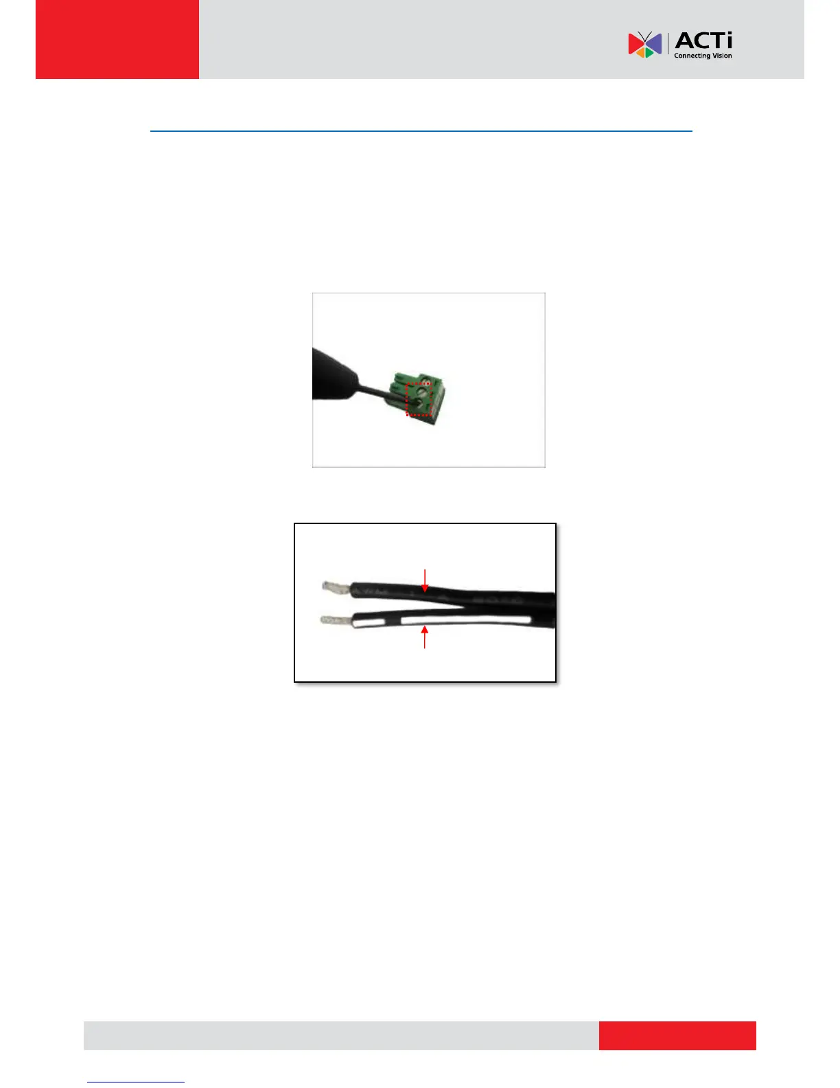 1. Loosen the screws of the 12V and GND pins of the power terminal block.