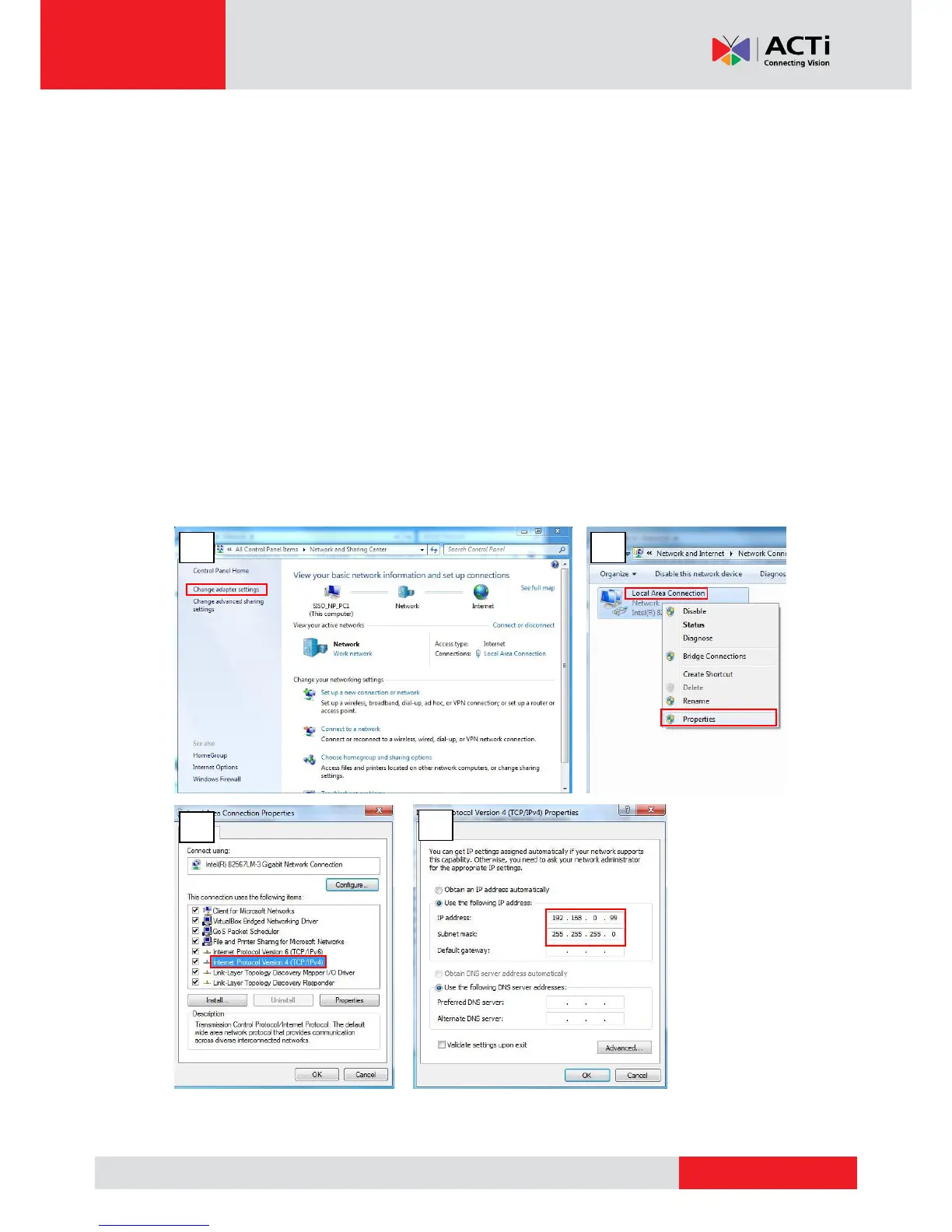 and set Subnet Mask to 255.255.255.0 by using the steps below: