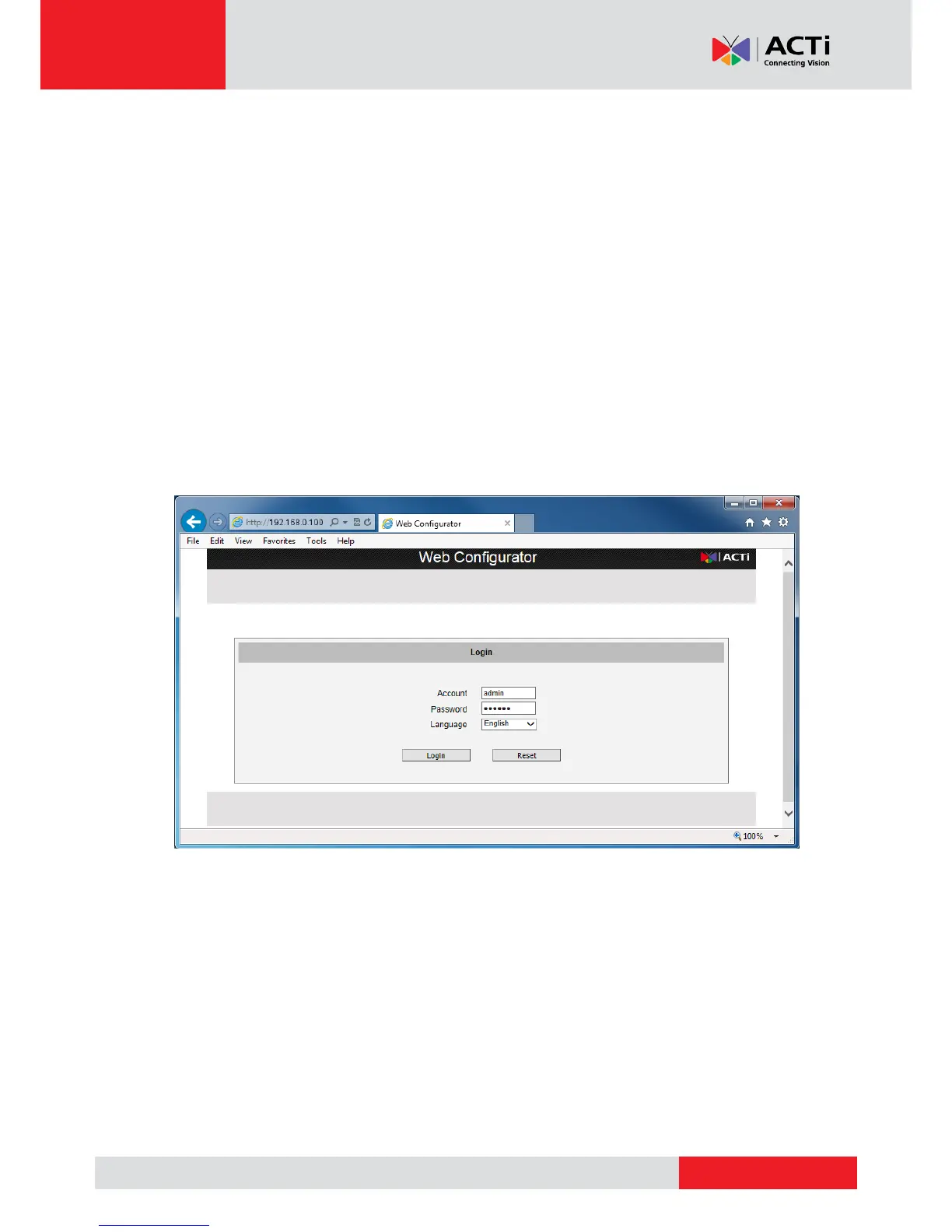 Assuming that the encoder’s IP address is 192.168.0.100, you can access it by opening the Web