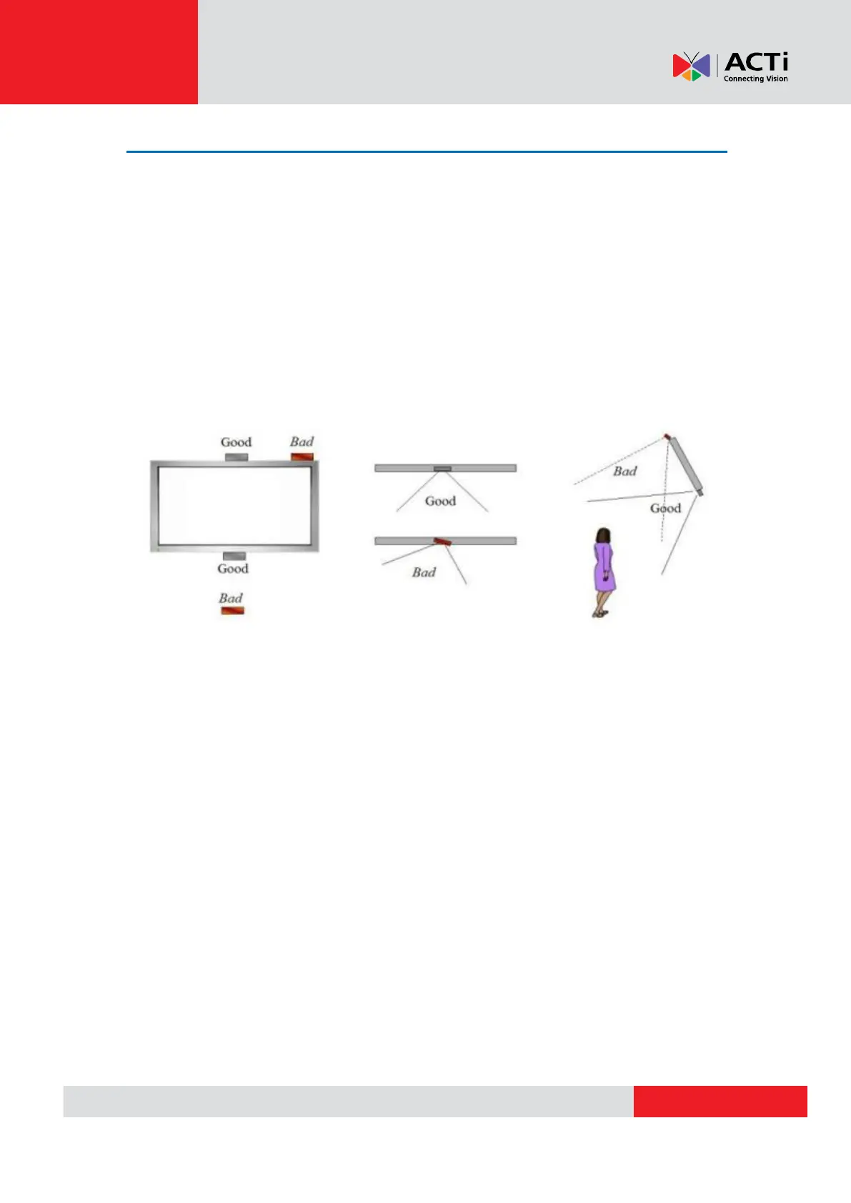 device at the top center of a screen frame. If placing on top will cause the camera to
