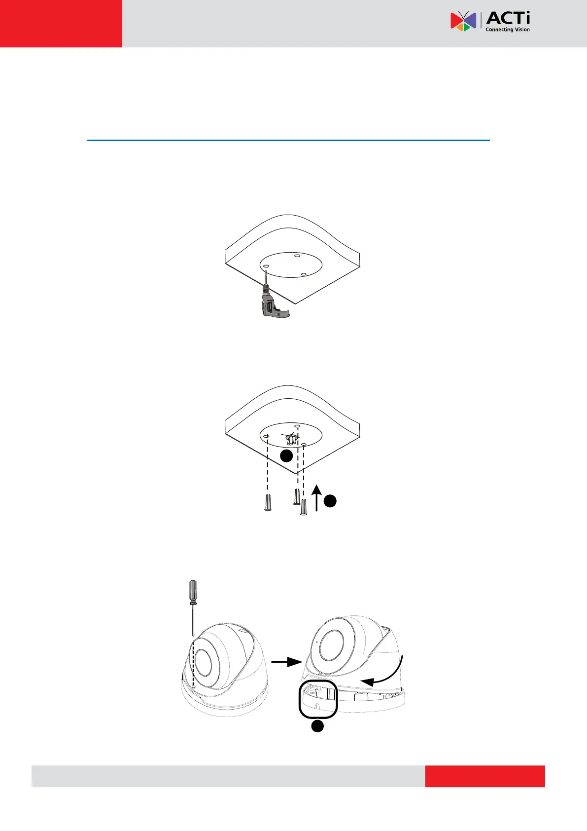 2. Insert the plastic anchors and drill a hole to lead the cables out of the ceiling.
