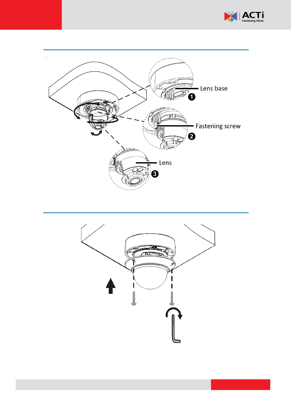 ACTi Z83 - Step 7: Adjust the Viewing Angle and Orientation; Step 8: Close the Dome Cover
