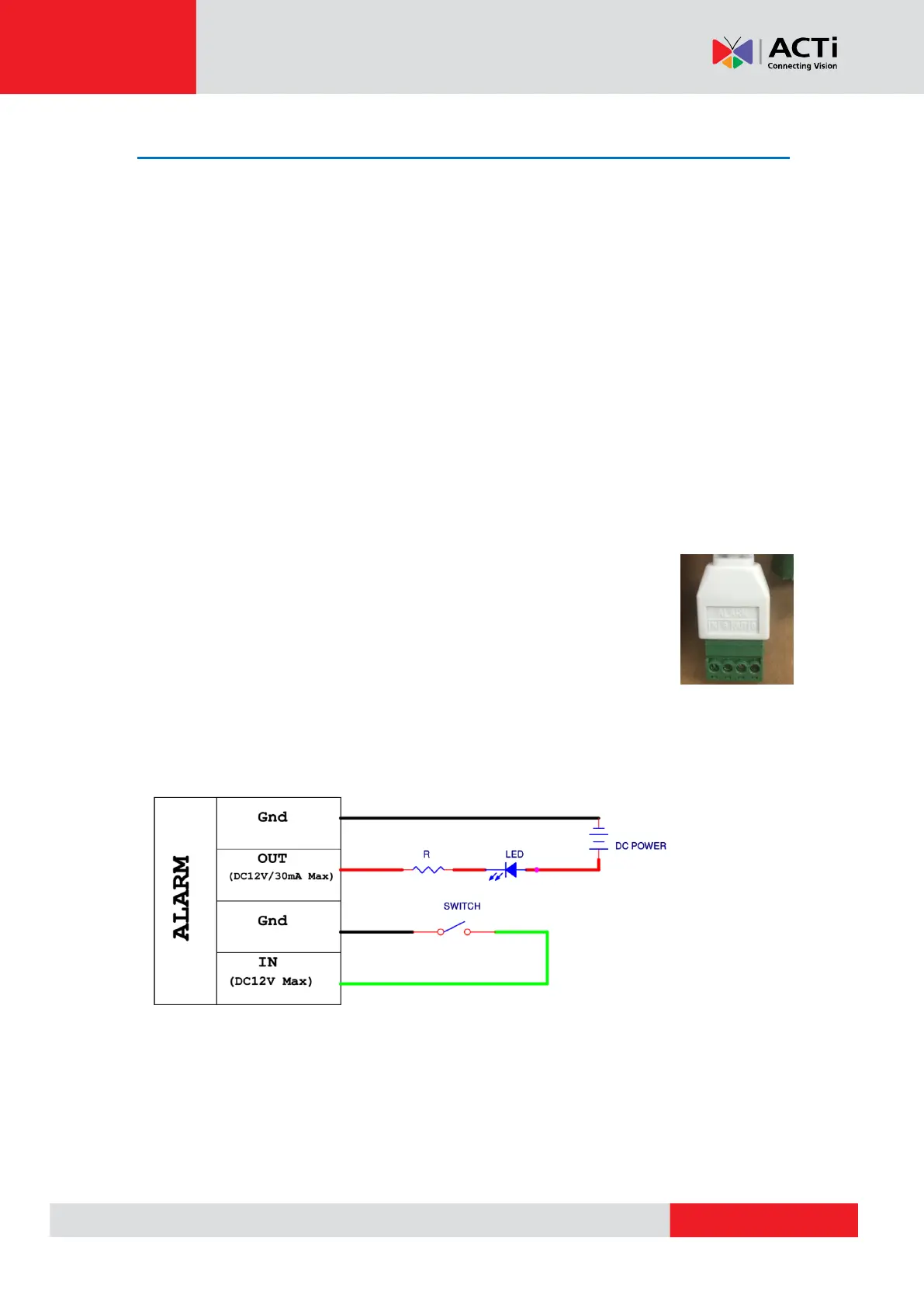 inside the camera. For example, you can connect an “alarm horn” to the camera; as such when