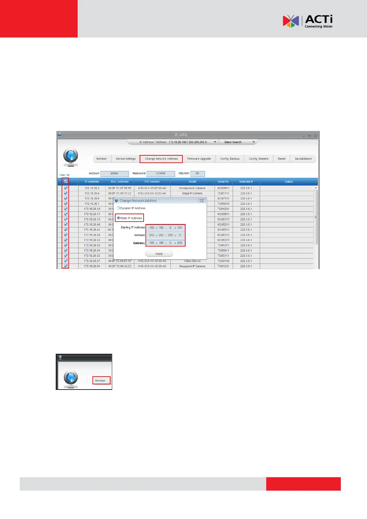 Later, by pressing the “Refresh” button of the IP Utility, you will be able to see the list of cameras