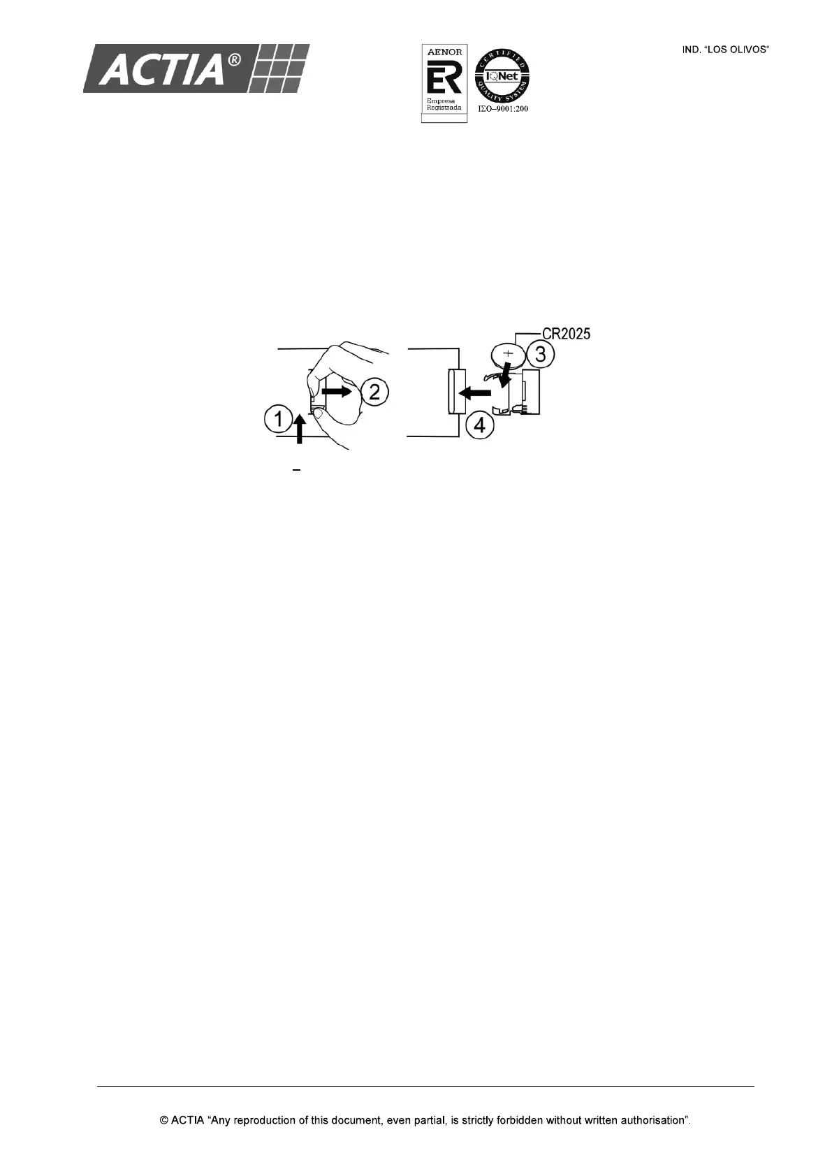 3. Install a battery type CR2025 with positive (+) and negative (-) poles facing the proper position