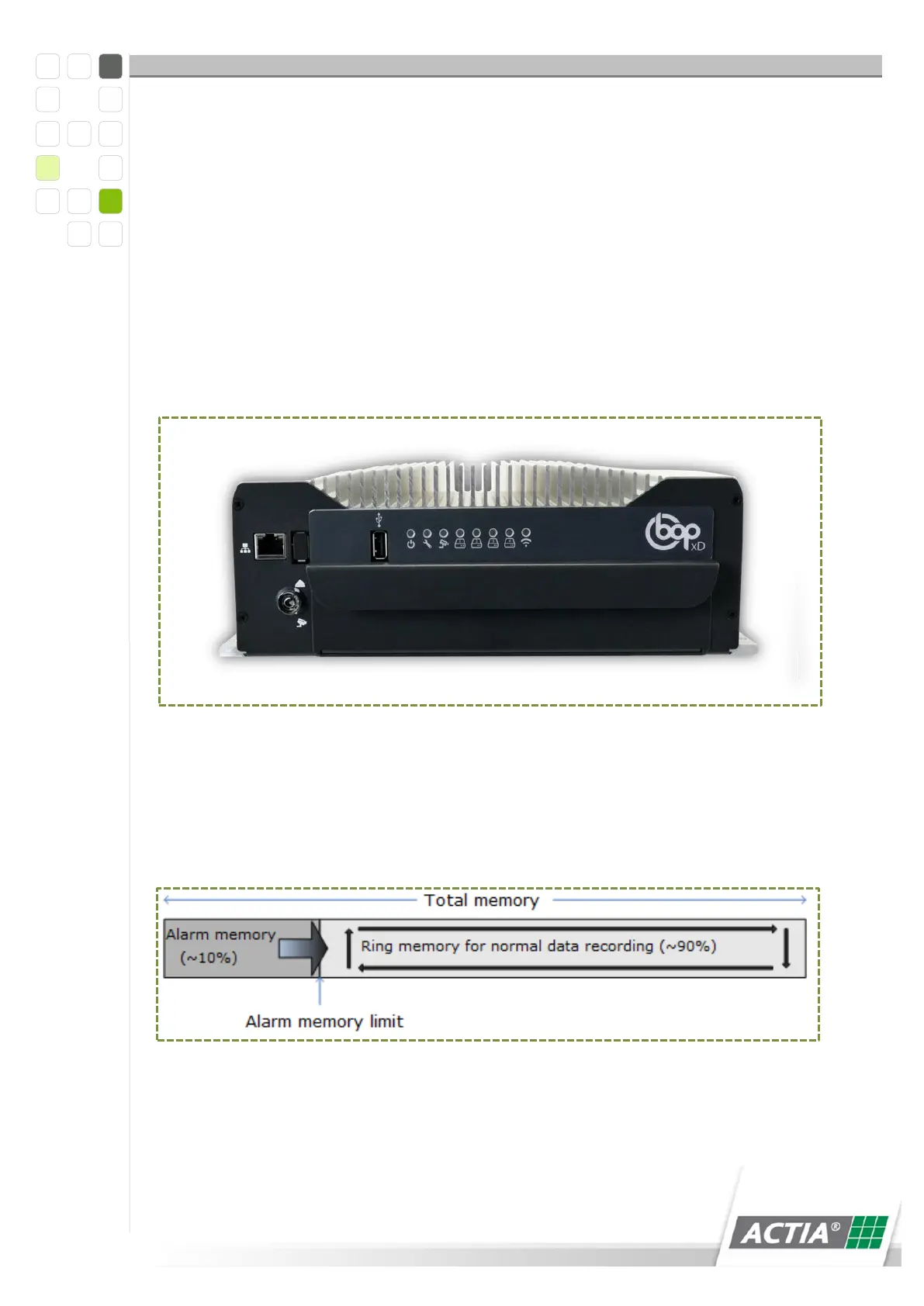 Alarm data is stored in a secure area of the ring buffer that cannot be overwritten.