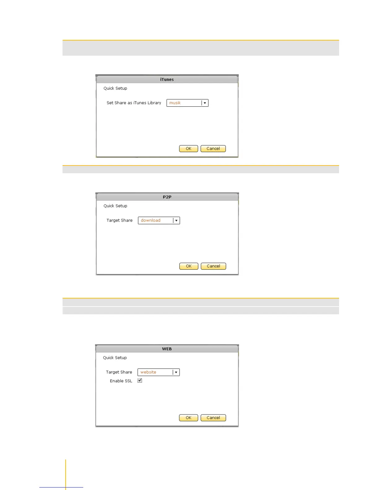Select the share folder name that will be used as target location for web server files.
