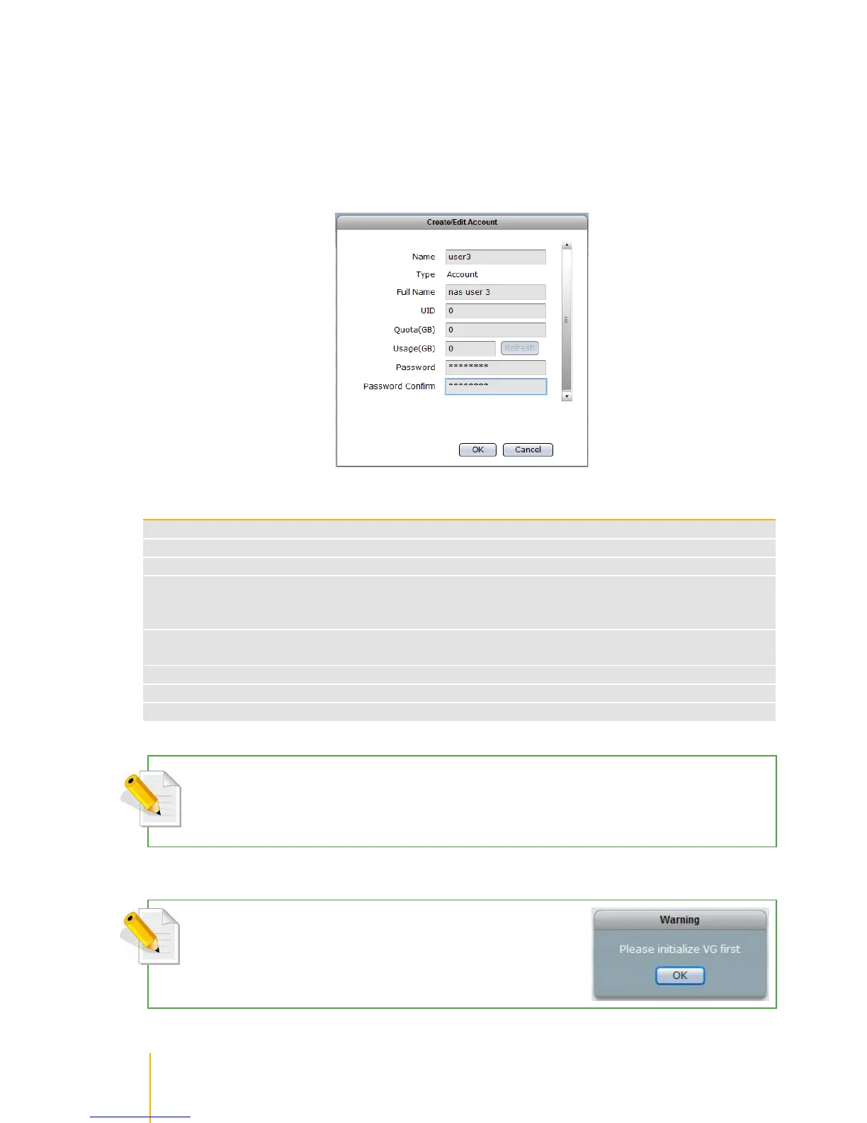 NOTE: If you try to create an Account without an existing VG (NASVG is not
