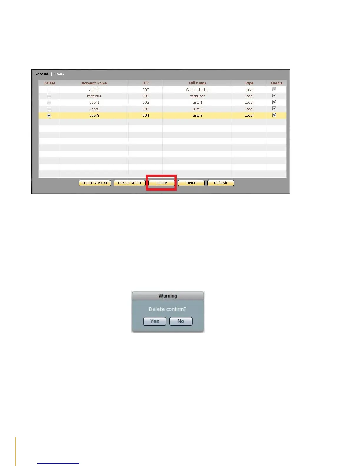 3. A warning message will be displayed. Select Yes to proceed. The account will be deleted.